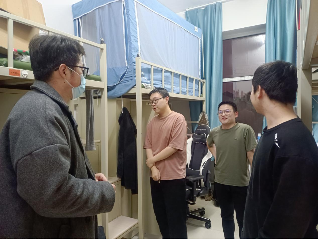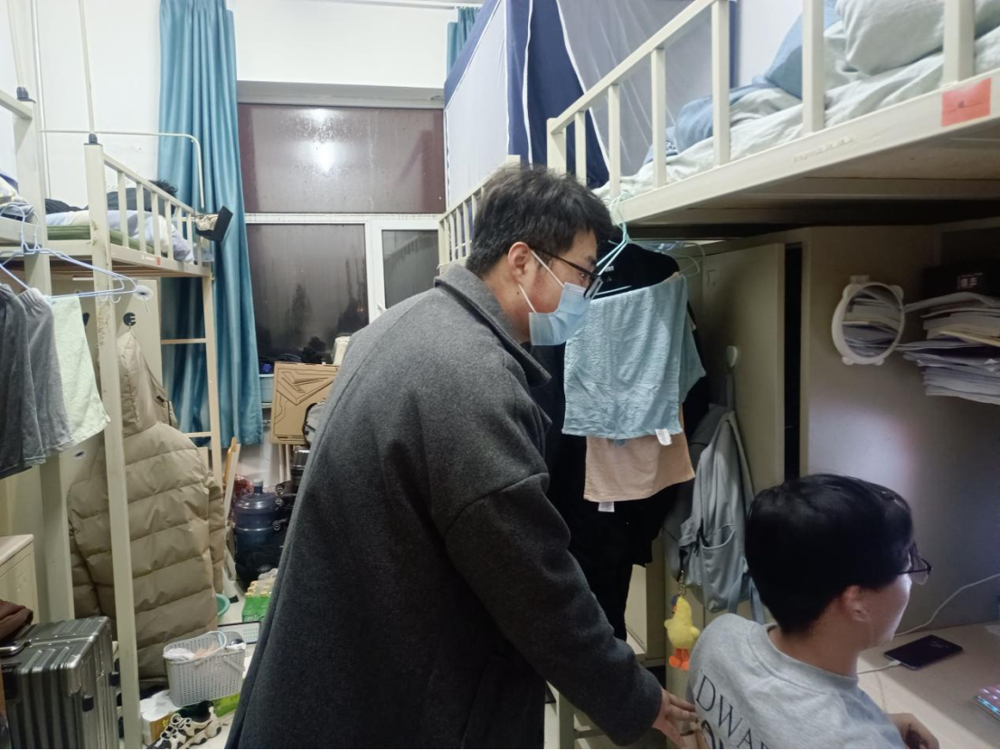 为贯彻落实疫情防控相关要求,及时了解同学们的思想动态,关心同学们的学习生活情况,2022年11月28日晚,太阳成集团tyc122cc辅导员宋绍伟老师对南苑三公寓、南苑四公寓、北苑二公寓的公司四个年级本科生公寓进行走访。