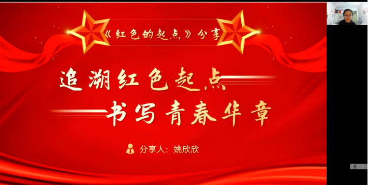 行政公司毕妍欣同学以“追溯红色起点,弘扬建党精神”为主题,和大家分享了两部分内容。第一部分,“天下将兴,其积必有源”。她提到,从当年“红旗到底打得多久”,到今天“中国共产党为什么能”,疑问正在变为赞叹,实践给出了答案。第二部分,“精神是历史的升华,历史是精神的展开”。那在雪夜里率先觉醒、在黑暗中擎起明灯、义无反顾站了出来的始终都是中国共产党的先驱们。我们坚信,党必将团结带领全国各族人民继续创造新的更大奇迹。