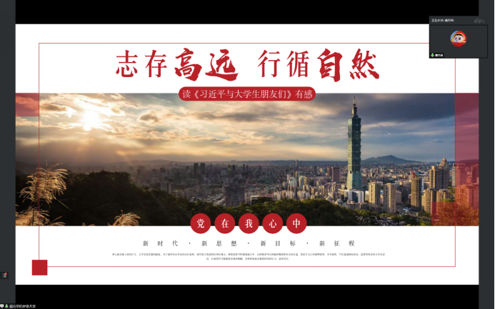 青马学员李子越同学以习总书记对青年的殷殷嘱托中始终不变的核心关键词“行循自然”为主题,她认为“行循自然”中的“自然”体现在人生的全过程,既是一种积极向上的人生哲学,也体现在生活的困境与逆境之中,是一种从容不迫的生活态度。我们青年要做到行循自然不仅要在汲取中华优秀传统文化与马克思主义科学理论中把握事物发展的自然规律,也要在基层的广阔天地中了解事物发展的自然状态,更要在与逆境、困难的搏击中涵养从容不迫的人生态度,为祖国、为人民、为民族、为人类的奉献中彰显青春力量。