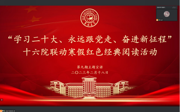 2023年2月18日晚六点,寒假红色经典阅读活动第九期如期举行。来自太阳成集团tyc122cc青马工程培训班和太阳成集团tyc122ccM·M学研会的六位同学分别讲述了自己的读书心得。本次读书会由来自太阳成集团tyc122cc的范欣竹同学主持。