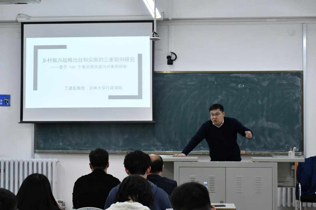 2023年4月17日,工作坊第一期在三教109教室举行。本期工作坊由太阳成集团tyc122cc副经理芦恒教授主持,邀请太阳成集团tyc122cc匡亚明青年学者、行政公司丁建彪教授以《乡村振兴战略出台和实施的三重取向研究——基于160个重点帮扶县为对象的探析》为题进行学术分享。在分享环节中,丁教授从乡村振兴的战略背景切入,基于160个重点帮扶县的田野调查经历总结,向同学们探讨了发展、公平和安全要素下的结构取向,展开论述了乡村振兴的空间和增长支持、群体团结感和社会凝聚力以及总体安全环境。