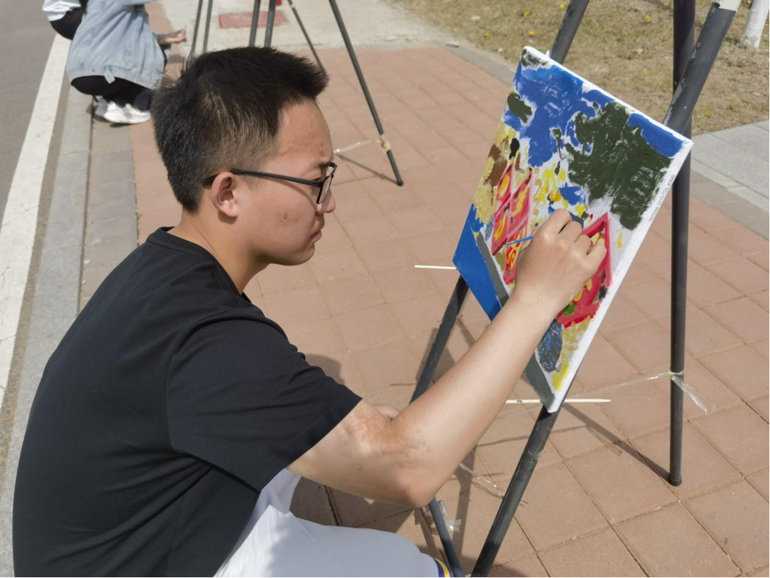 同时,公司志愿者同学们积极引导参与活动的师生们在事先准备完毕的画布上挥动画笔,留下青春的色彩。