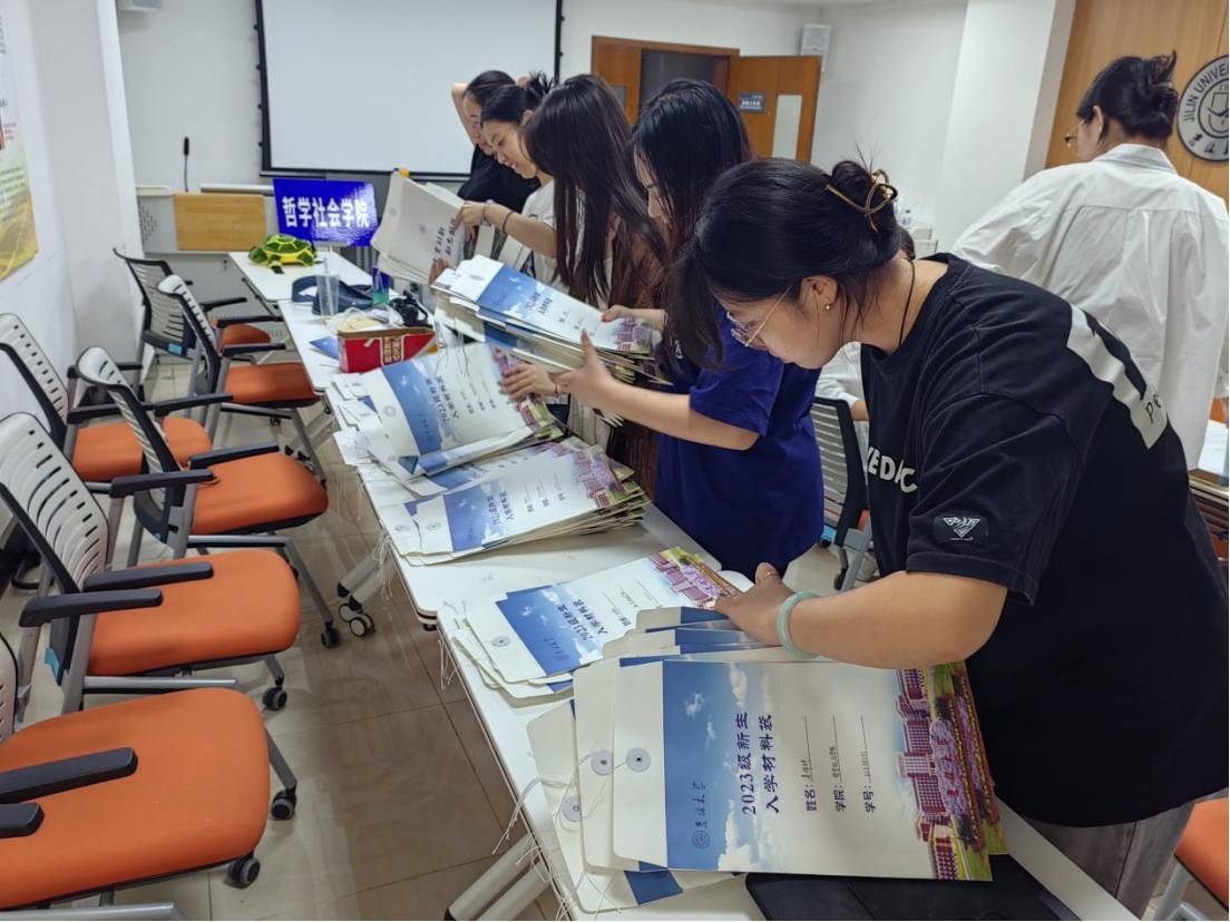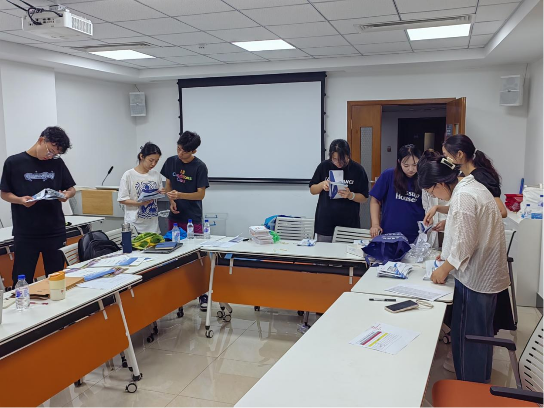 首先,根据有关通知,小组成员分批次前往各部门领取需要分发给新生的报到材料。结合公司新生人数较多,报到时间相对固定的实际情况,宋老师和同学们将领取的材料进行有效分类整理,并按照门类列出清单,逐一核对放入新生报到时领取的材料袋中。
