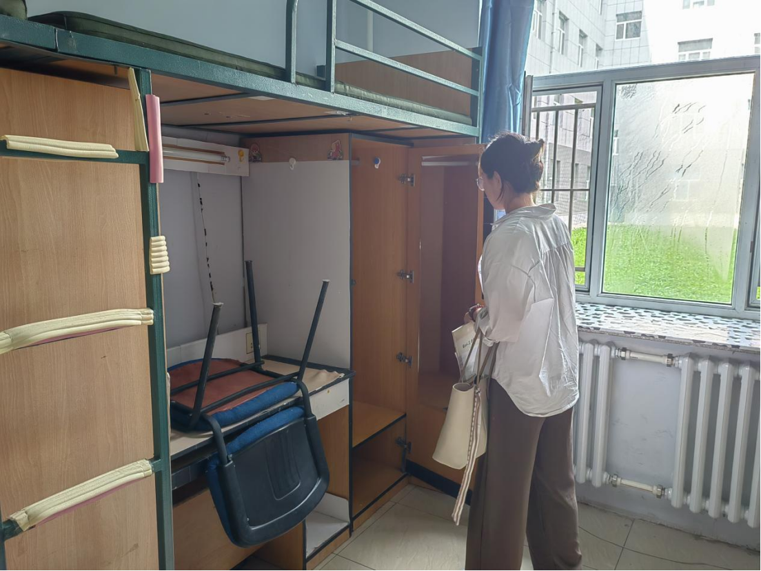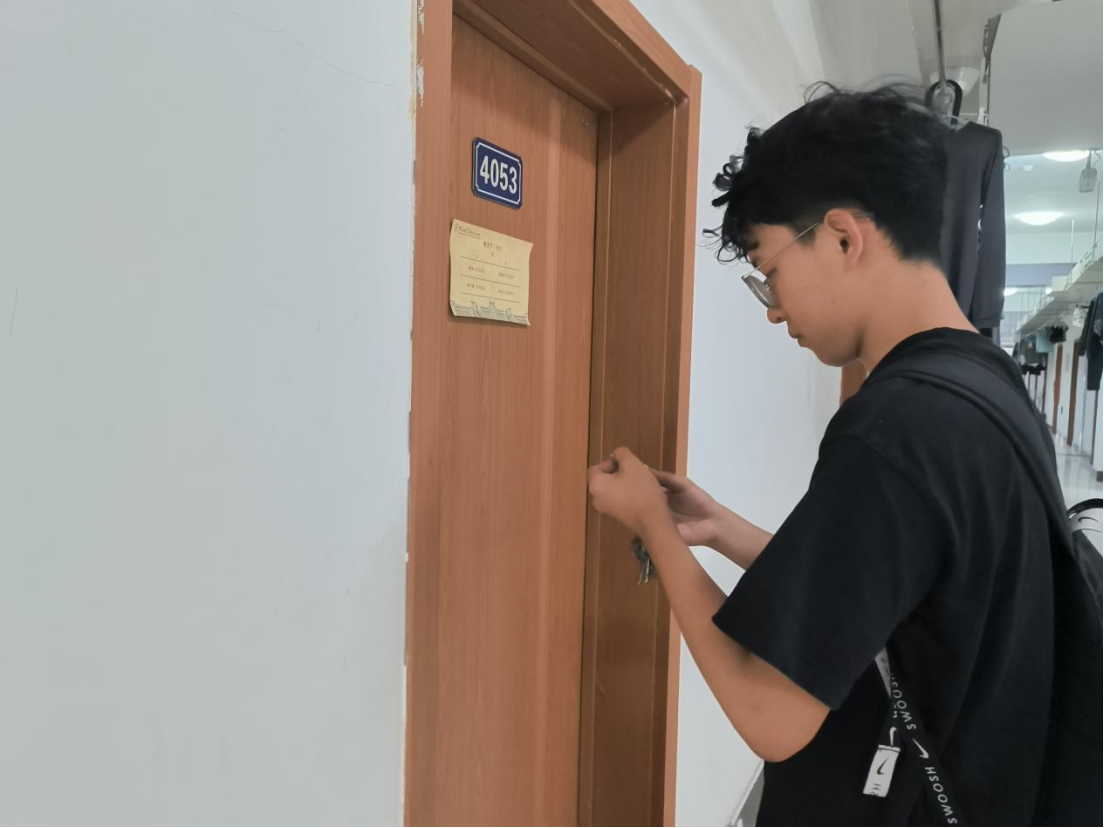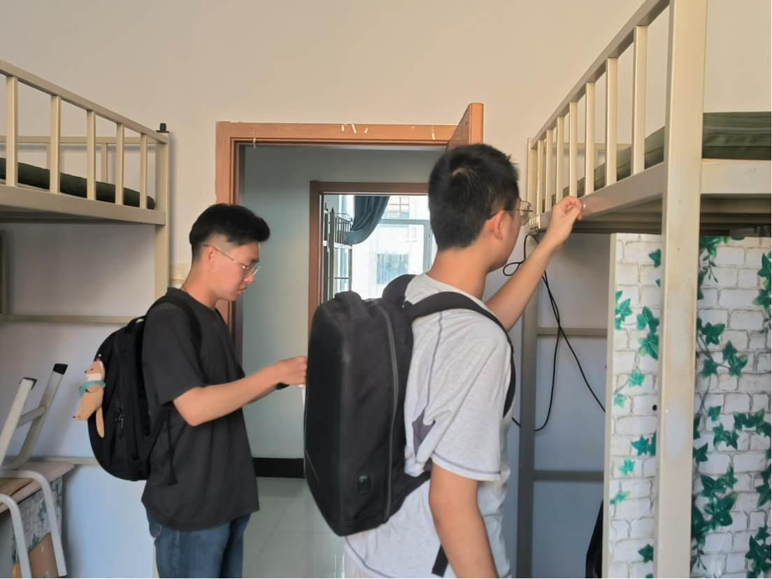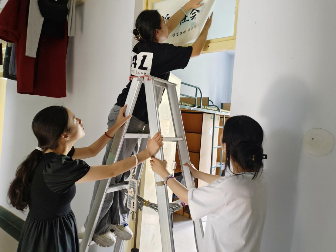 经过短暂的休整,宋老师和同学们来到宿舍了解新同学们的住宿情况。老师和同学们将早早设计好的公司标识和员工住宿标识认真张贴,仔细检查了寝室硬件设施,发现问题向宿舍管理人员及时求助解决。同时,师生们利用已有的清扫工具对新同学们的宿舍进行了打扫整理,为新同学营造卫生干净的住宿环境。