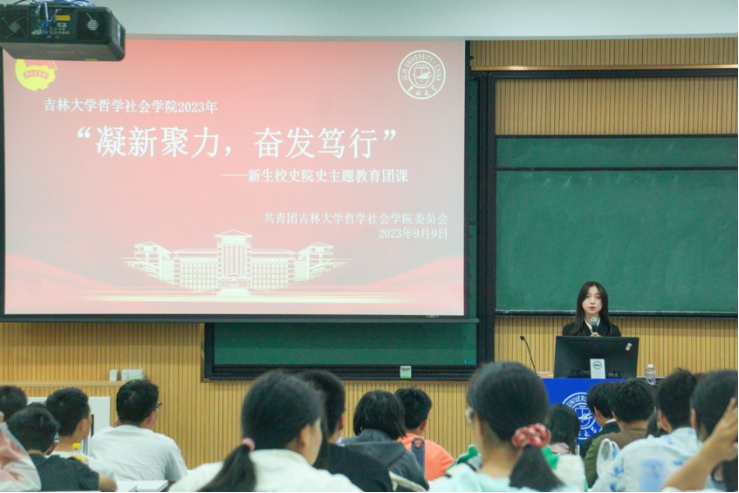 随后,进入到校史院史知识竞赛环节,同学们踊跃参与、积极发言,争相作答。在回答一个又一个校史院史知识题的同时,深入了解校史校情,新同学们逐渐增强了作为“吉大人”、“哲社人”的责任感、使命感和自豪感。