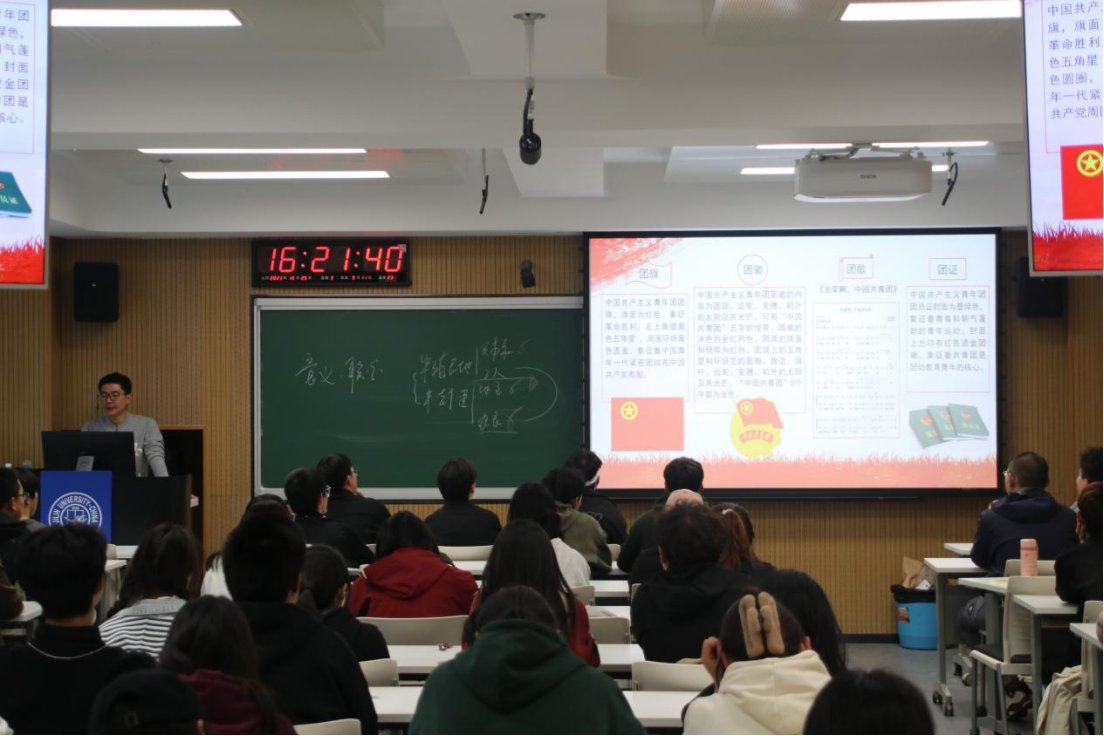 最后,支继超老师希望同学们都能够进一步深思“为什么加入中国共青团”这一核心问题,以团员的标准严格要求自己,从思想上入团,从政治上入团,继承发扬“爱党”“爱团”“爱国”的优良精神传统;同时在日常学习和工作中强化个人政治意识,增强使命担当,将个人的理想追求融入党和国家发展事业之中,自觉将爱国之志转化为报国之行。