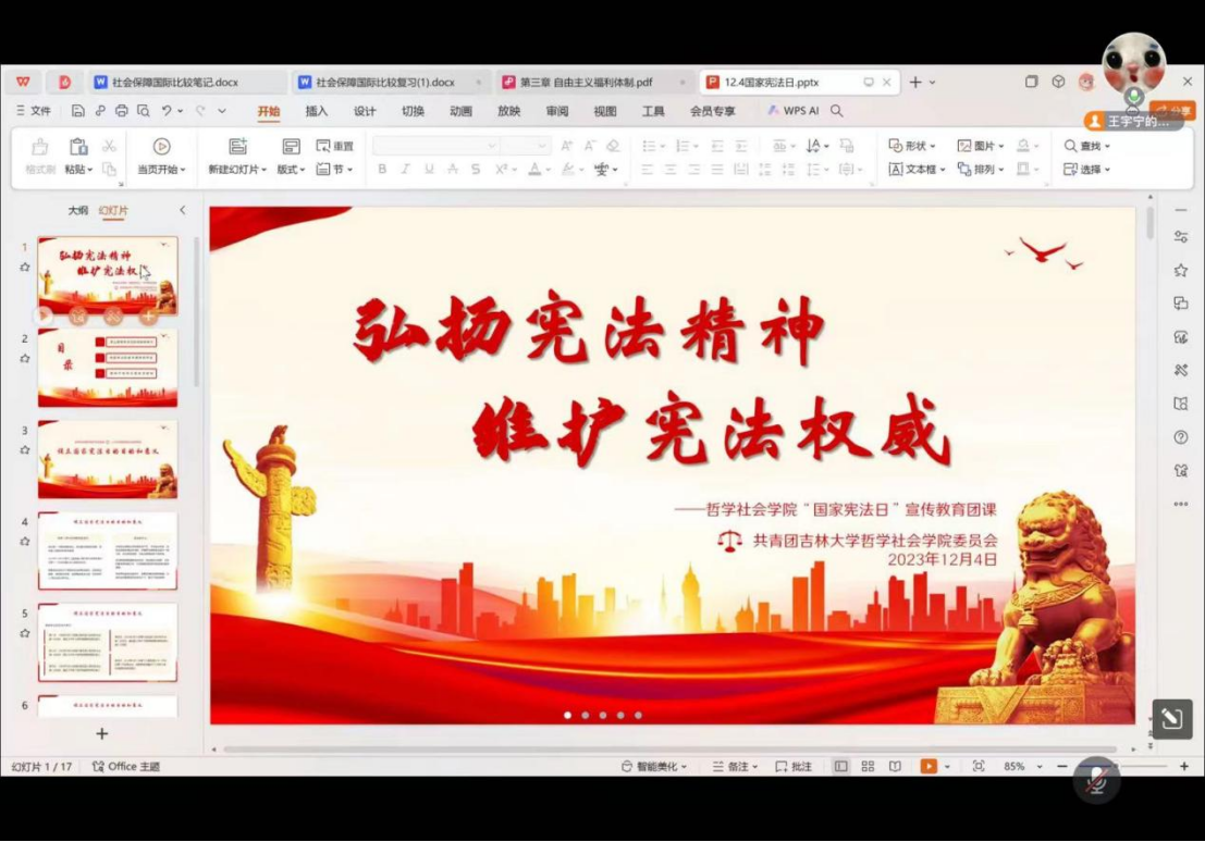 2023年12月4日晚7点,太阳成集团tyc122cc团委面向2023级团员举行了一场主题为“弘扬宪法精神,维护宪法权威”的线上主题团课活动。