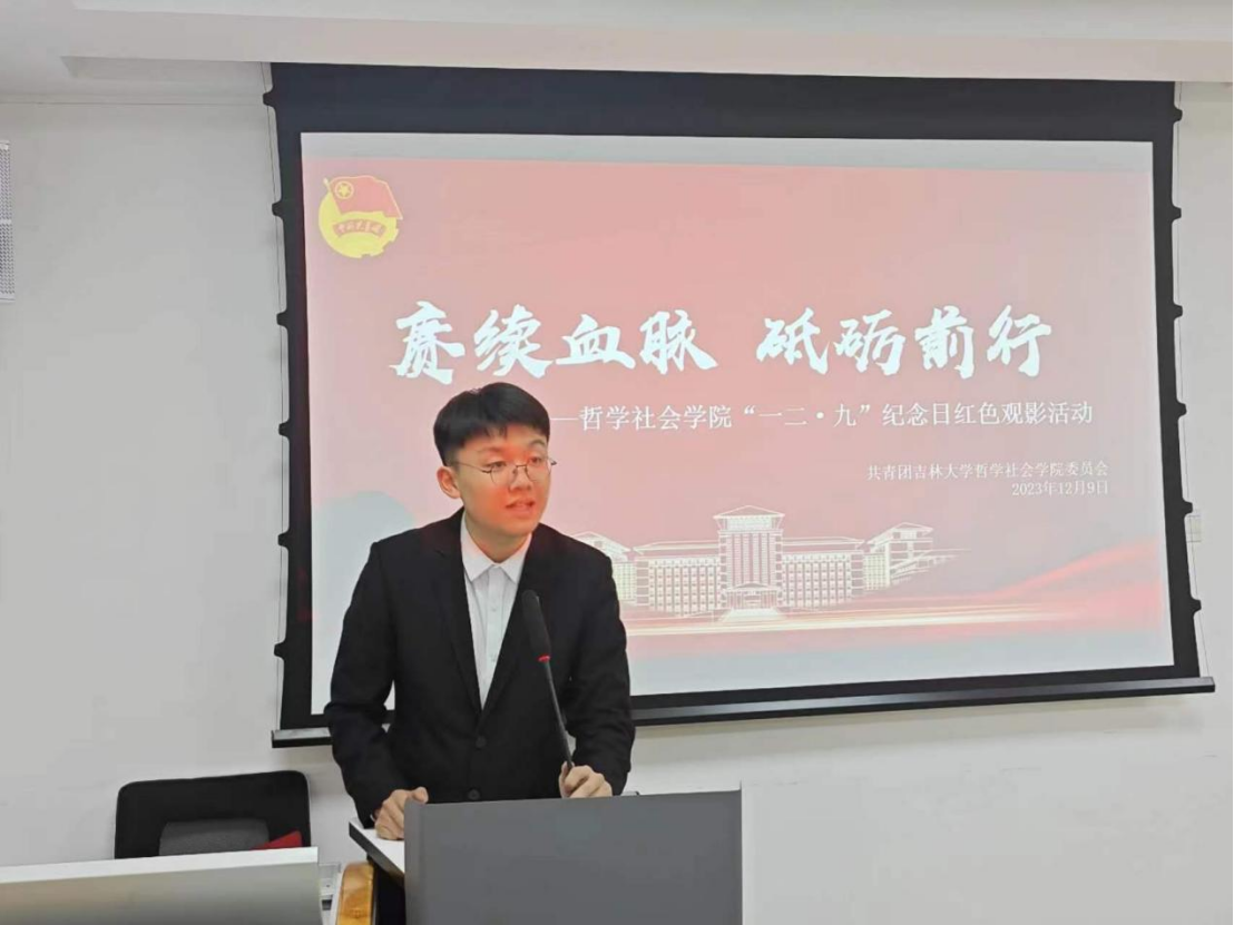 房安国同学带领大家回顾了“一二·九运动”,面对国家危难民族危机,当年的青年学子们勇于担当,为民族独立和尊严而斗争,展现出浓浓的爱国情,时至今日仍是当代青年坚定理想信念,矢志不渝奋斗的精神动力。