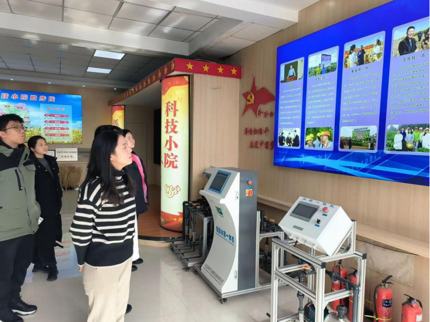 接下来,实践团观看了展板与宣传册,重点对科技小院的助农模式进行了解。科技小院利用创新方法推动当地农业经营主体科学发展、壮大实力,通过探索实施“科技小院+”模式,为小农户致富引路,让农民真切看到,通过提高小农户组织化程度,脱贫致富和乡村振兴发展并不难。同时,通过“政、校、企、农”融合发展,走出了一条人才培育、促进小农户与现代农业有机衔接、促进农业绿色发展的新路子。