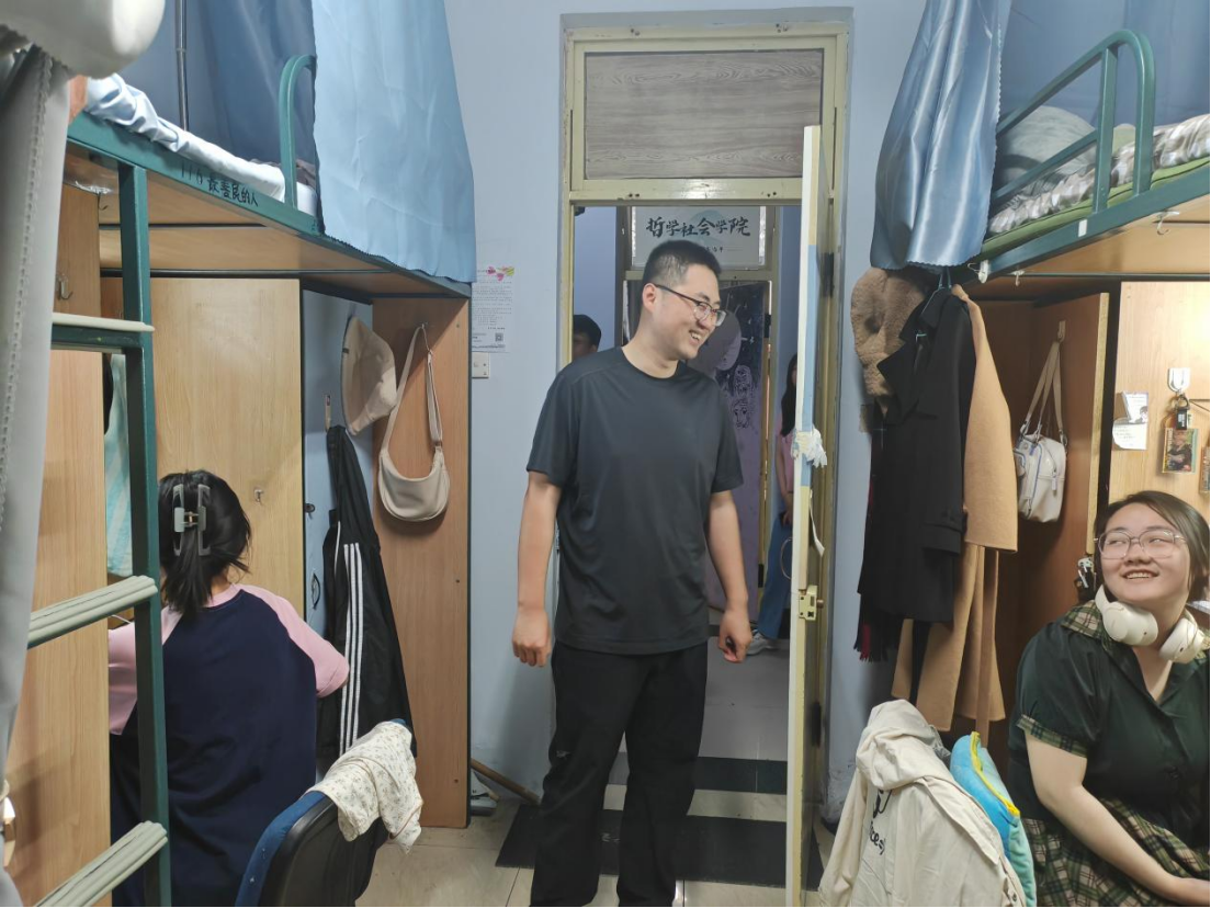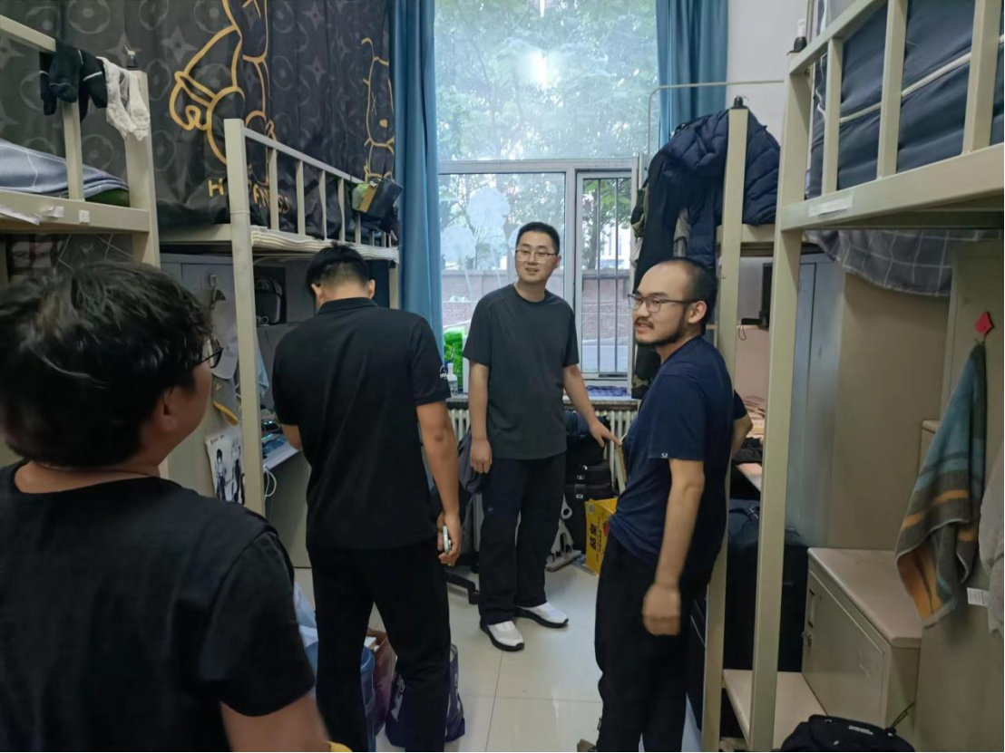 为引导员工强化安全意识,切实提升员工寝室消防安全,同时加强整体学风营造,进一步了解员工期末月备考情况,共同建设团结和谐、安全整洁的寝室环境和勤学严谨、诚信笃实的学习氛围,6月4日,由哲学社会公司党委副书记兼副经理刘培强老师组织统筹,公司团委书记刘畅老师、本科生辅导员宋绍伟老师以及公司员工组织的主要负责人同学们共同前往公司本科生寝室进行消防安全检查与学风走访督促活动。