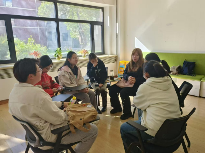 接下来,活动进入了人体字母的游戏环节,每组成员抽取一组单词,在组内进行讨论和分工,最终用身体合作呈现出这个单词,若有他组成员猜出,则视为挑战成功。同学们进行了激烈的讨论,展示时每个人都尽力的完成自己的演绎,最后在一片笑声中完成了各自的挑战。