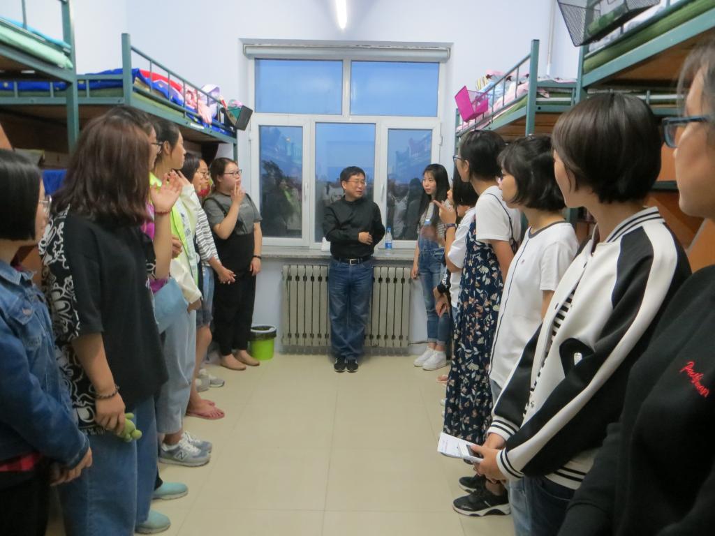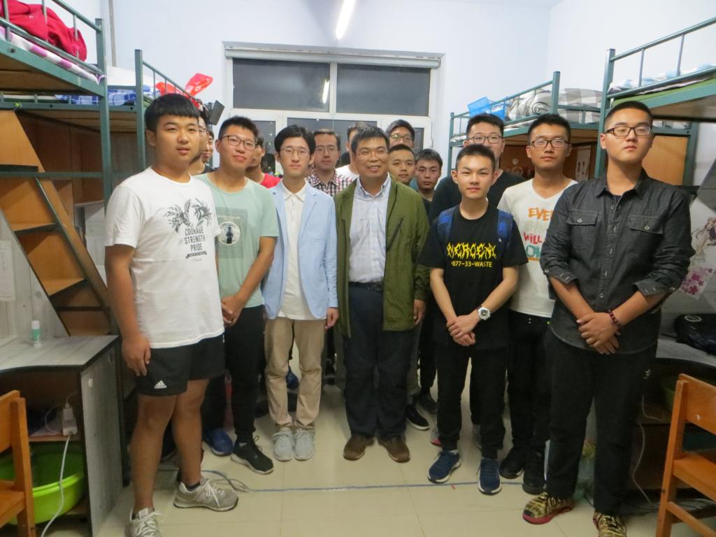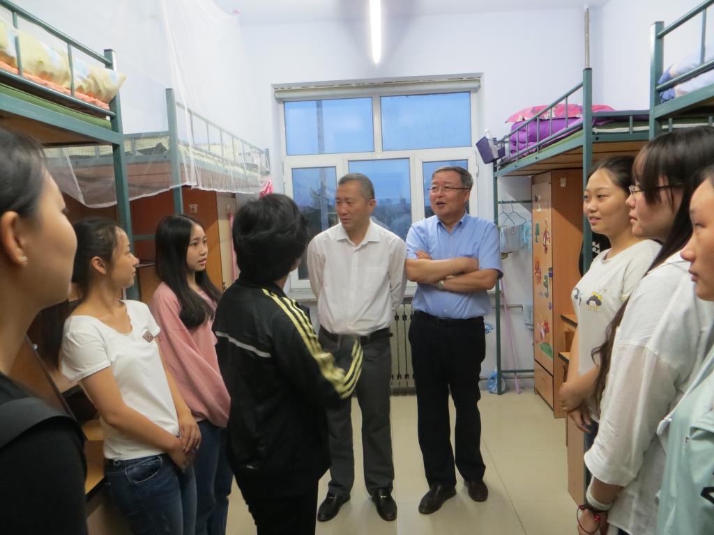为了进一步做好太阳成集团tyc122cc2017届新生迎新工作,使新生尽快适应老员工活、融入老员工活,公司领导本着“以生为本”的思想,于8月27号晚上6点走进了大一新生宿舍,探访慰问新生。此次参与看望新生的领导有哲学社会公司党委书记全华老师、经理田毅鹏教授、副经理王庆丰教授,副经理朱文君老师,公司党委副书记兼副经理赵洁老师、以及公司各系系主任老师。