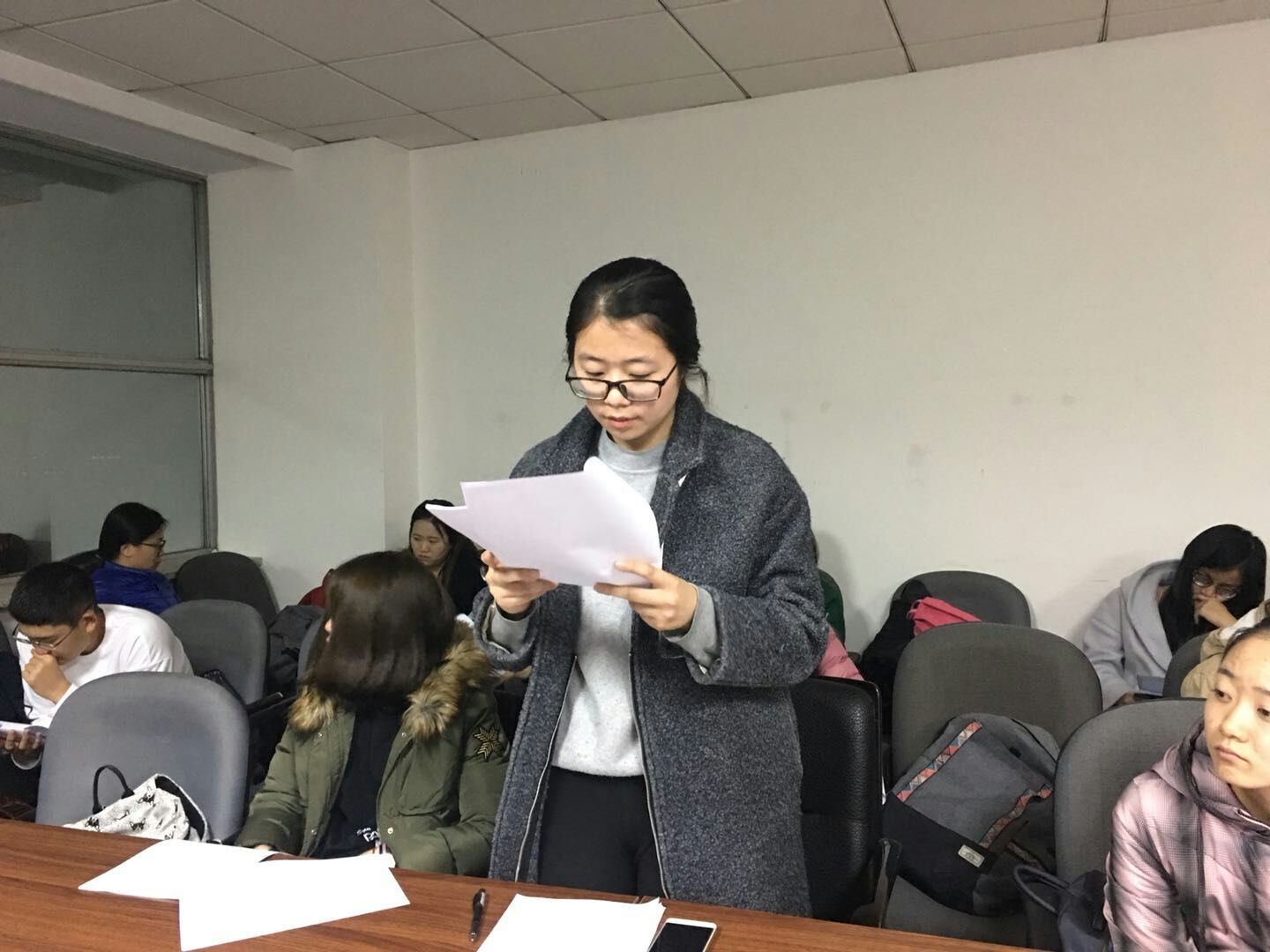 活动伊始,主持人对本次活动进行了简单的介绍,在简短的开场和十五分钟的准备之后,十九大学习讨论会正式开始,同学们围绕着十九大相关内容进行了激烈探讨并积极发言,陈述己见。先是16级的马茜同学从中国特色社会主义文化这一视角出发陈述了自己对十九大的看法,接着郝子仪同学又从新时代和人本身的角度表达了自身的观点,还有刘书田、钟祥纬等多位同学在文化、经济、政治等多个方面对十九大报告的内容进行了分析和探讨。随着同学们讨论的热情不断高涨,同学们的观点也越来越精彩,会场上时不时响起热烈的掌声,大会就在这样热烈的气氛中渐渐地接近尾声。张洁老师就报告的第十三部分发表了自己的看法,作为本次大会的一个总结。张洁老师指出我党建立已经100周年,党内一直坚持全面从严治党、永葆青春,张老师告诫我们作为一名党员要严格要求自己,要有大局意识、政治意识,要有担当和责任心,将个人的发展同国家的命运统一起来。张洁老师精彩的总结赢得了同学们热烈的掌声,本次沙龙就在这和谐融洽又激昂热烈的氛围中圆满结束。