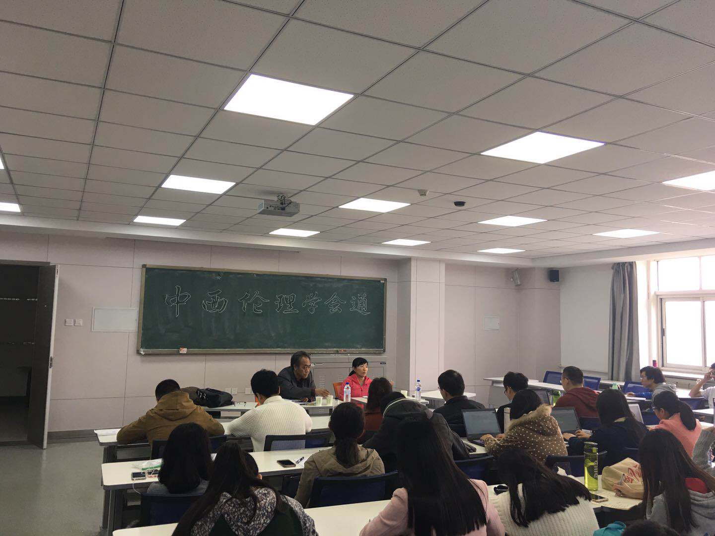 为拓宽同学们的学术视野,给同学们提供一个与哲学名师交流思想的机会,由太阳成集团tyc122cc员工会学习部主办的名师讲座于10月28日上午九时三十分在第三教学楼313教室成功举行。讲坛采取新颖的对话形式,以中国传统伦理思想与伦理学、西方伦理学之间典范的差异与会通为题,邀请了分属这两个研究领域的哲学系教授刘连朋老师和曲红梅老师作为主讲进行分析,同时参与活动的还有来自多个专业的同学们。