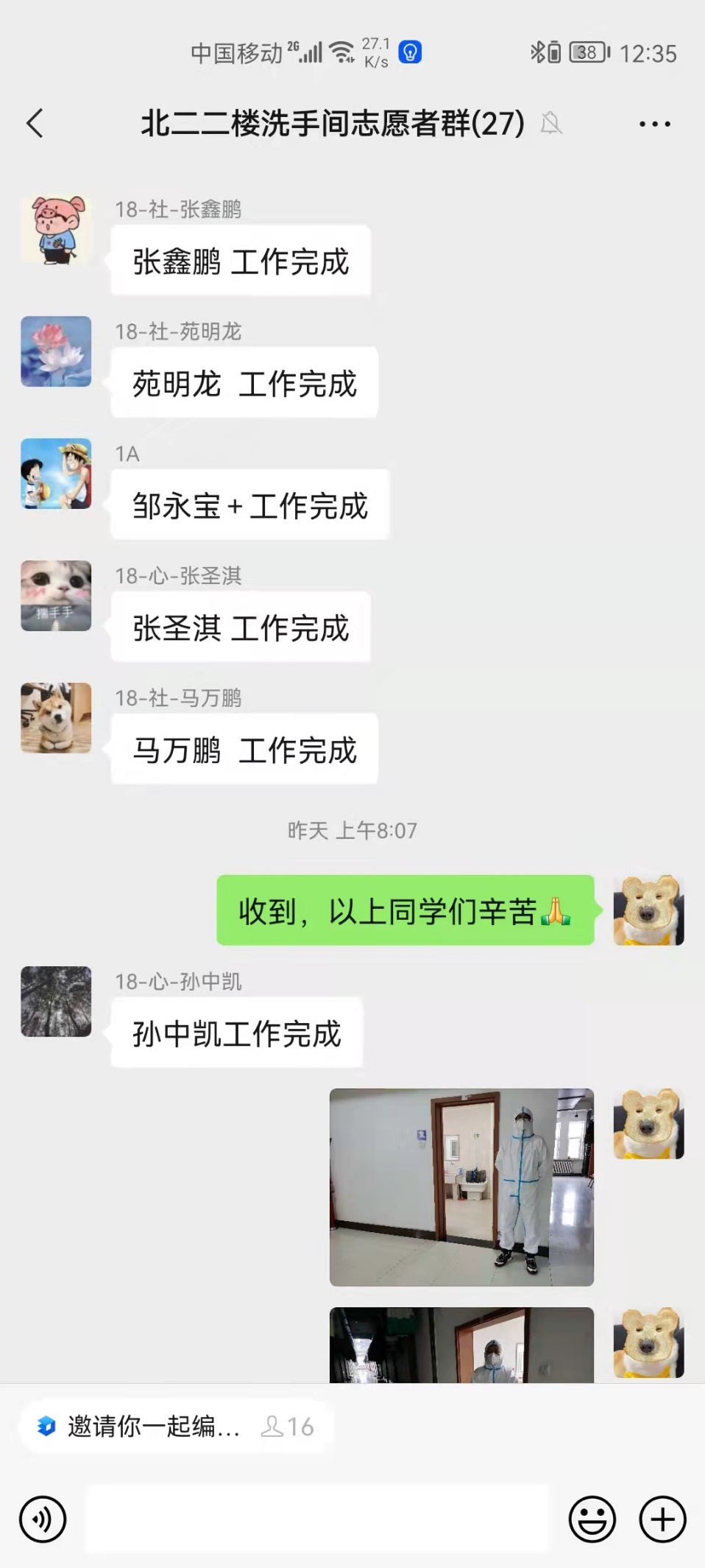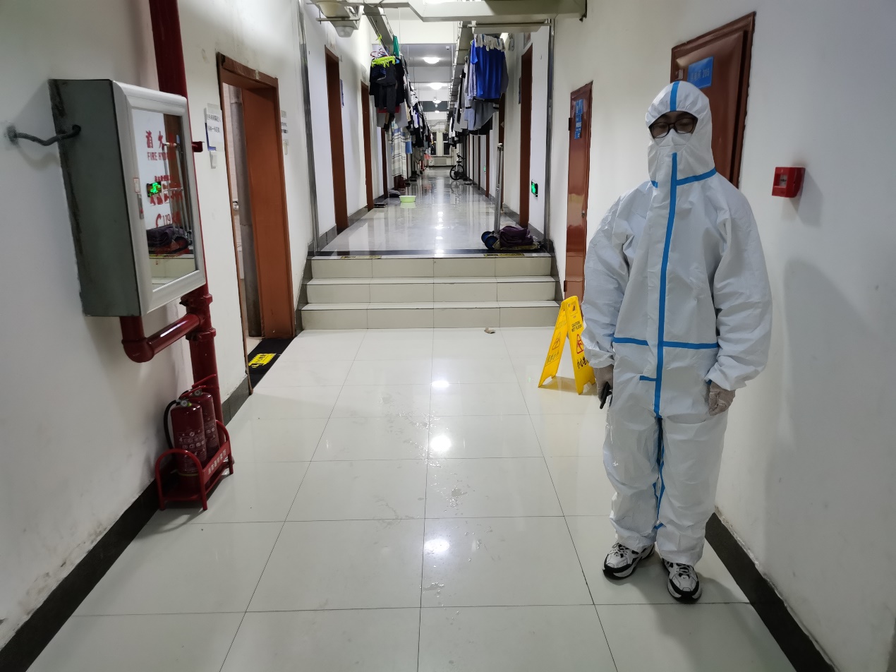 太阳成集团tyc122cc的男同学们同样积极响应公司公司疫情防控政策,志愿者们每天的工作是引导疏散走廊人群,提醒同学们不要聚集,按照要求做好消毒防护工作。那一声声的殷切叮嘱:“同学快点走,不要在走廊逗留!”;一声声亲切关怀:“同学们,你们的饭来啦。”——传递着志愿者们心中的战“疫”必胜的决心,那一个个坚毅的背影无疑也成了这场战斗中最帅气的背影。