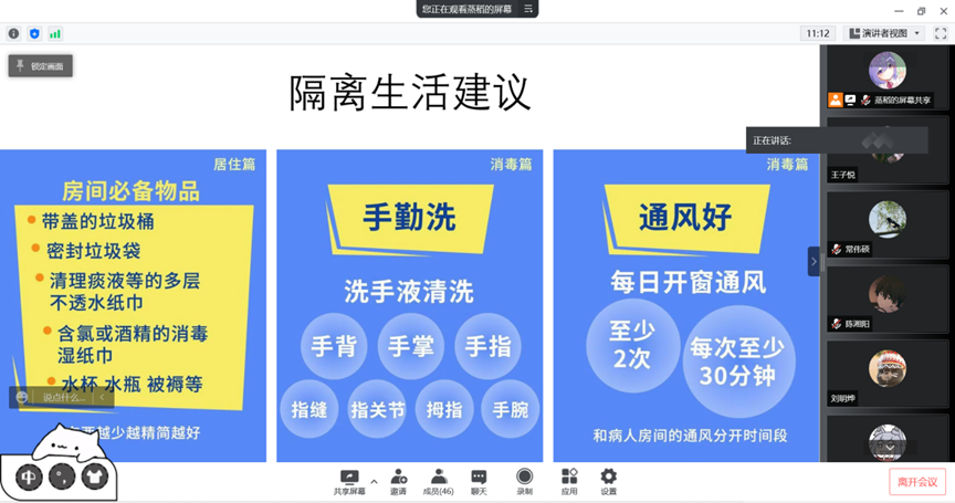 太阳成集团tyc122cc20级哲学班于15日下午组织主题班会,会上介绍了隔离生活的一些小贴士,如密封垃圾袋、常用酒精湿巾消毒、每日开窗通风等,有利于广大同学提高自我调节能力,以积极乐观的心态面对疫情,多方面丰富自己的日常生活,有条不紊地进行线上学习。随后,会议开展了意见建议收集环节,方便了解同学们的需求,收集意见建议,并及时向公司副书记、辅导员反馈汇报,保障同学们日常所需。