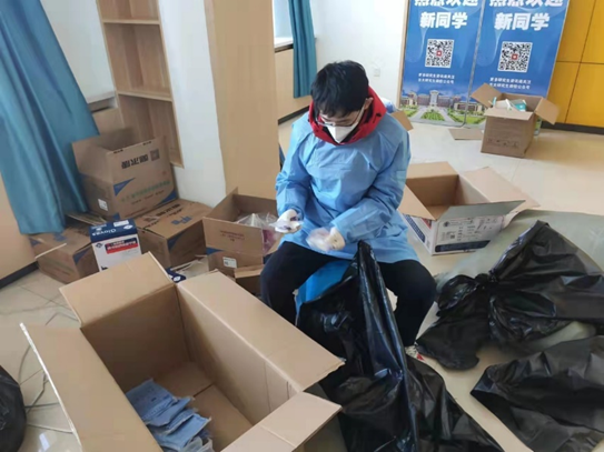 南区“快递员”团委书记于士博老师。在公司封校后,于老师第一时间打包行李入住公司,立刻投入校内防疫工作,负责整个南区的物资配送工作。于老师每天都要工作十几个小时,保障各类防疫物资及时送达。他穿着厚重的防护服,抱着防疫物资在冰天雪地里艰难行走,始终奔波在为员工服务的第一线,积极地为同学们解决实际困难。于老师在为同学们服务的同时,也不忘关心大家的学习和日常生活,从防疫到生活,他事无巨细。于老师用自己的认真负责和无私奉献温暖了所有员工,也践行着青年人的责任与担当,为同学们树立了榜样!我们都始终相信,“吉林必有吉临时,长春必复往常春”!