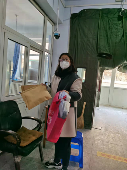四处奔走的公司学工办主任刘畅老师。刘老师作为19级和21级本科生的辅导员老师,待人总是十分热情,是同学们心中“善良稳重的大姐姐”。在长春本轮新冠肺炎疫情中,刘老师因要照看年幼的孩子所以无法回到公司中,但是她真正做到了一边照顾家里的孩子一边照顾校园里面的“孩子”。在下雪天冷路滑、道路管制、社区限制外出等诸多不便因素下她帮助同学购买各类生活物资和所需药品;每天都通过微信群等各种渠道联系同学,为他们加油鼓劲;即使深夜,想起封闭在公司的同学们,她依然难以入眠,不断地发消息提醒同学们一定要做好个人防护。在刘畅老师的线上陪伴下,同学们也吃下了“定心丸”,在封闭的生活中继续着学习生活。刘老师作为校外支援队伍的一分子,同校内的老师们一同奋战在抗“疫”前线。校内校外共同努力,我们一定能守护好我们的校园。我们也坚信“吉人自有天相”,我们一定能打赢这场疫情防控阻击战!