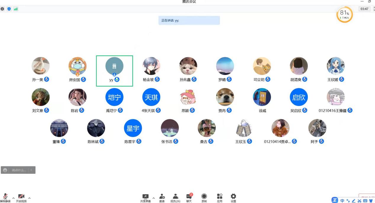 2班班主任李远老师通过腾讯会议首先详细地询问了同学们在封寝期间的生活状况、心理状况和学习情况,并表示长春市疫情已经持续了一段时间,公司全面静态化管理已经来到第二十二天,希望同学们不要松懈,继续遵守公司的各项防疫要求,保护好自己。其次,李远老师提醒同学们要注意多开窗通风,多利用寝室现有条件进行一定的体育锻炼,提高免疫力,减少生病的风险。然后,李远老师了解了班级同学担任员工志愿者的情况,叮嘱志愿者们在为同学们服务时也要做好自身的防护,保障自身的安全。最后,李远老师希望同学们不要荒废了这段特殊的封寝时光,要按时完成各项学习任务,在此基础上可以多读些感兴趣的书籍或看一些经典的电影,丰富自己的生活。