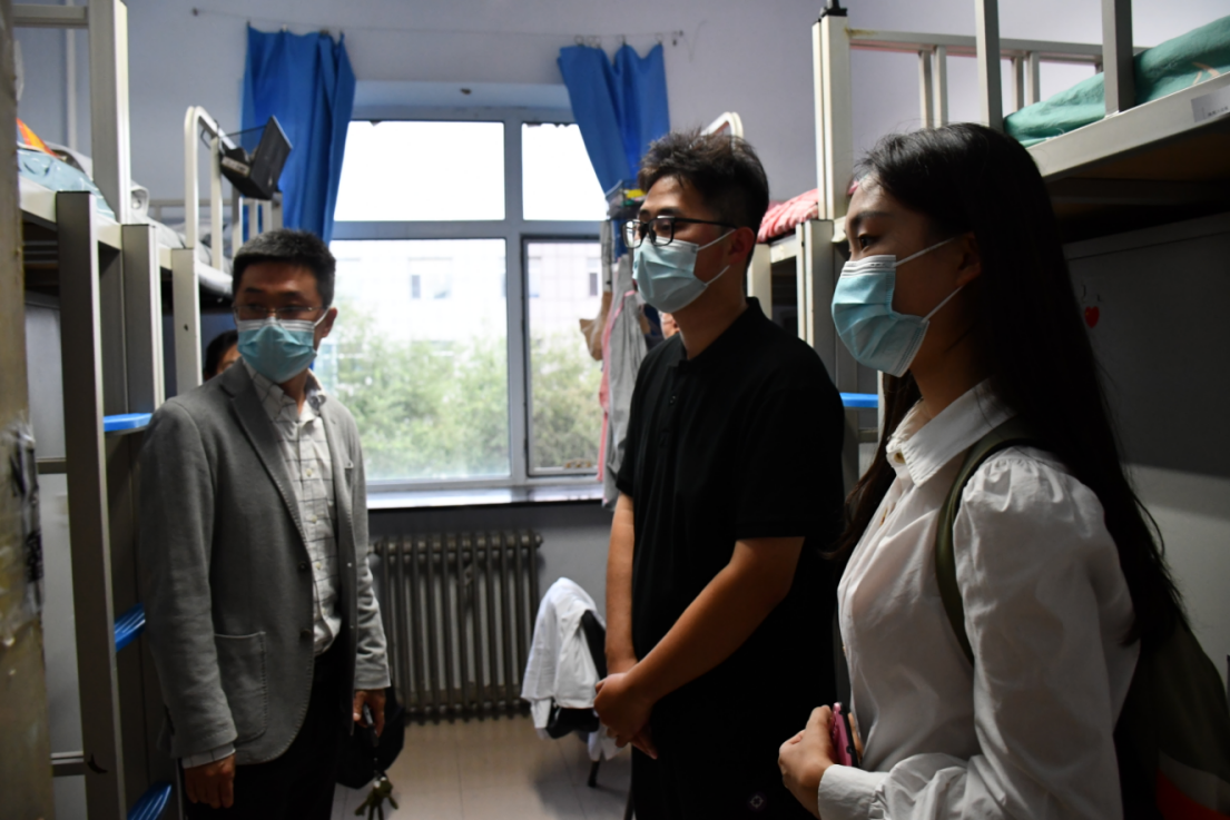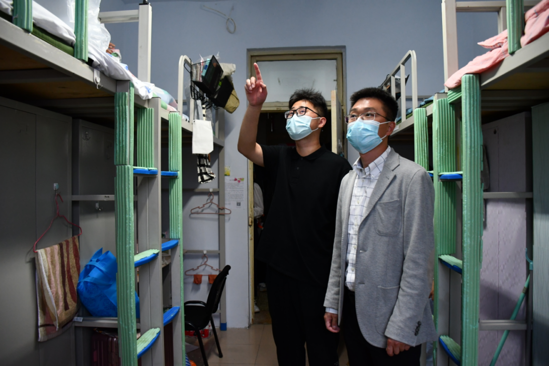 在走访过程中,两位老师走进寝室,与同学们进行交流,殷殷问候、谆谆关怀温暖了同学们的心。两位老师认真了解同学们在疫情防控特殊时期来校报到行程中的复杂情况及入校后的身体状况、心理状态和生活需求,仔细询问了同学们来到公司后是否遇到困难。
