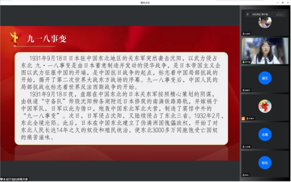 勿忘国耻,吾辈自强。天下虽安,忘战必危。默哀结束后,在主持人的引导下,全体参会人员共同观看了两段关于九一八历史的纪录片,其中之一为九一八事件的全过程,另一记录了中国人民奋起抗日英勇身影。