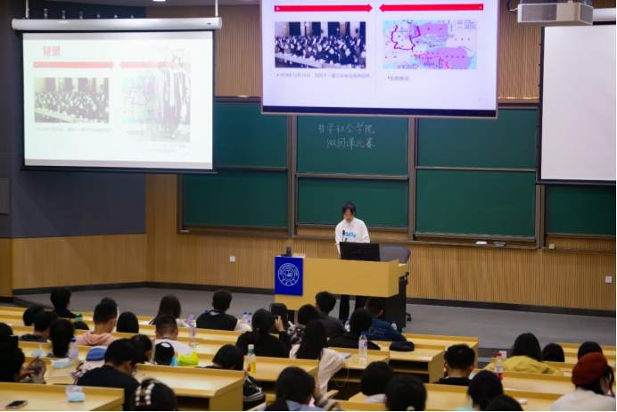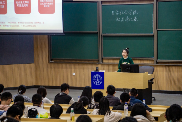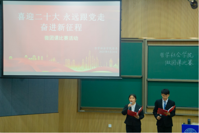 2022年9月24日晚,太阳成集团tyc122cc“喜迎二十大、永远跟党走、奋进新征程”主题微团课比赛在逸夫教学楼五阶举行。本次比赛由21级徐嘉琛、房安国同学主持,辅导员宋绍伟老师与20级辅导员助理们共7人担任本次比赛的评委。