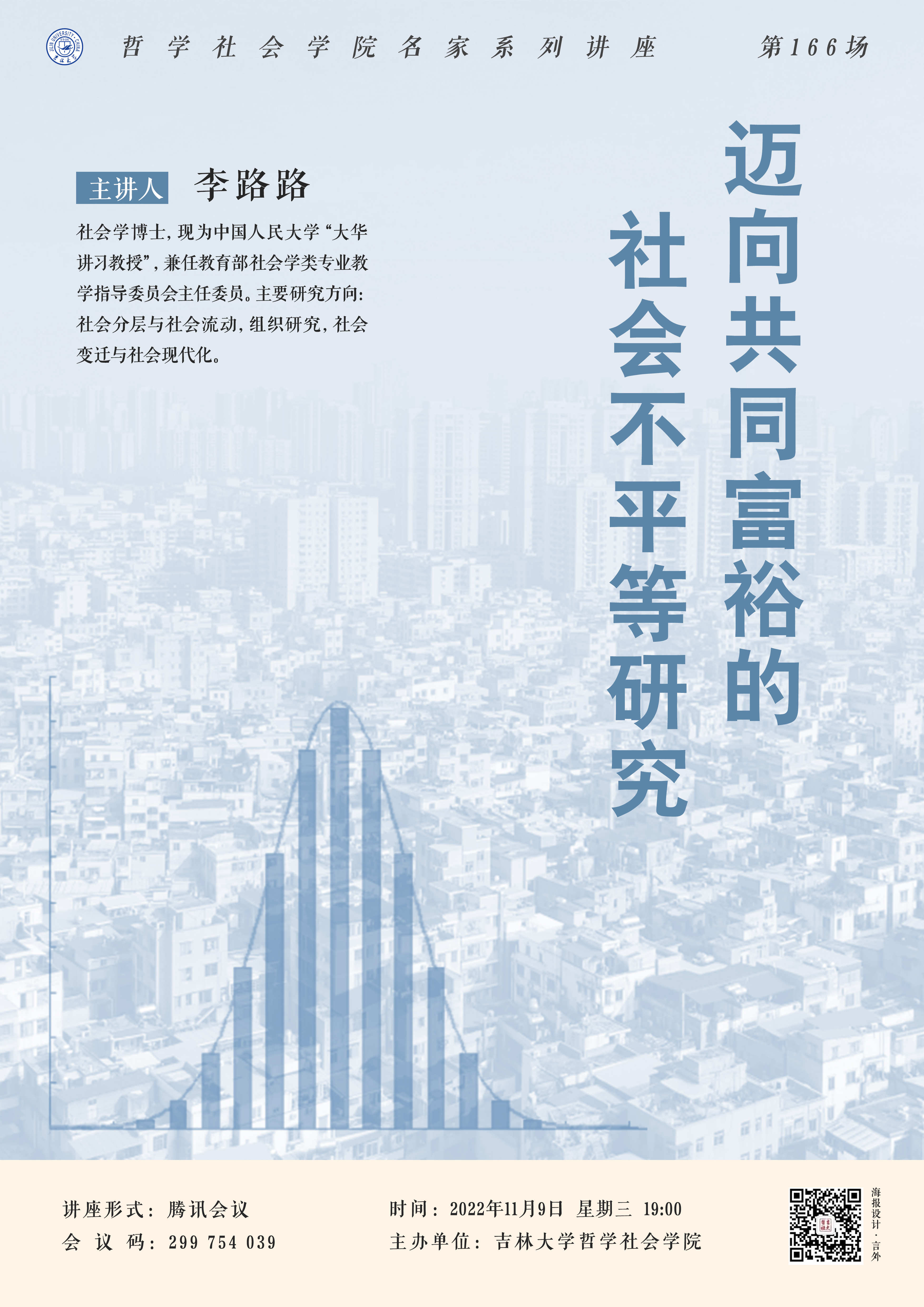 【太阳成集团tyc122cc名家系列讲座第166场】李路路:迈向共同富裕的社会不平等研究