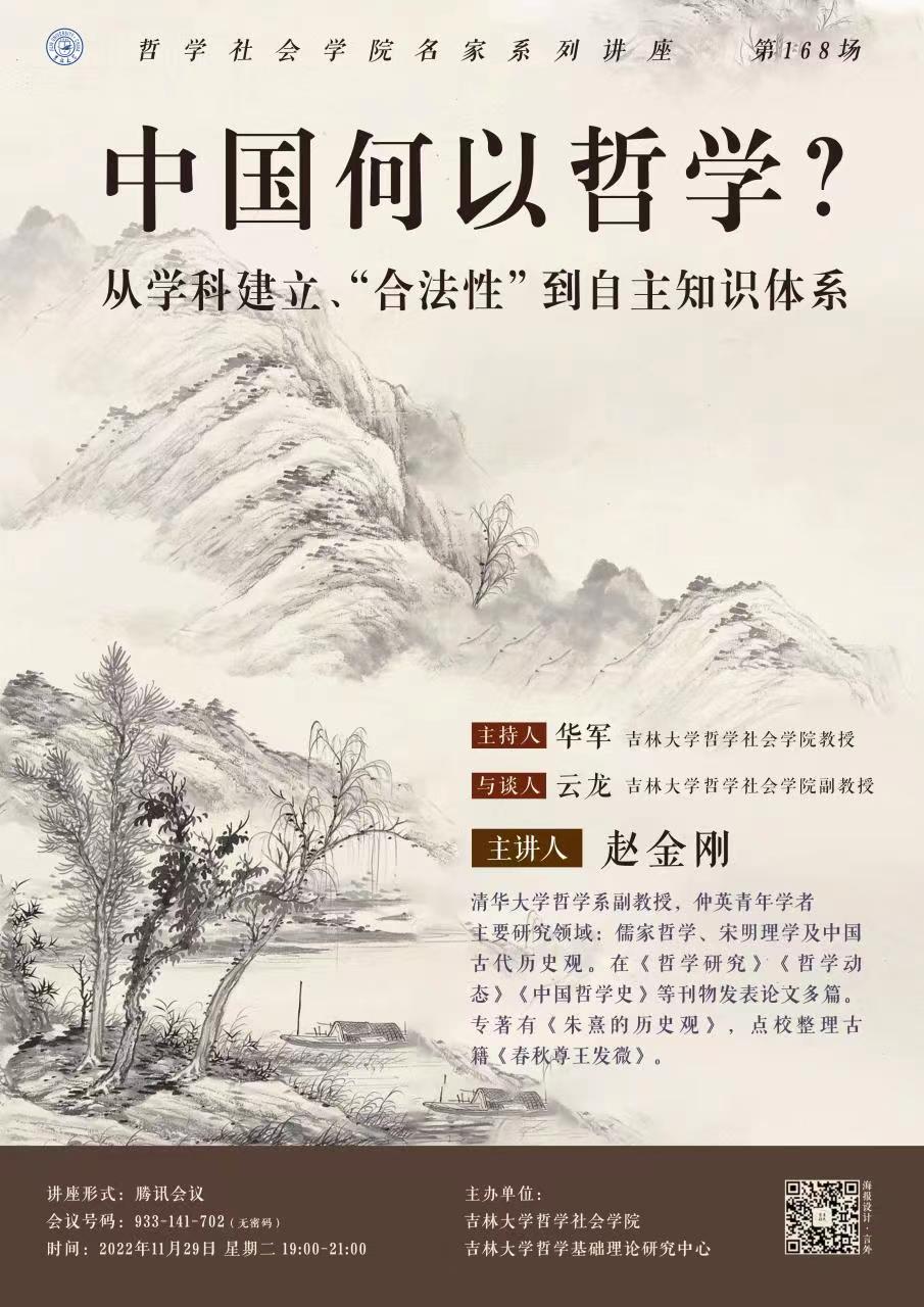 【太阳成集团tyc122cc名家系列讲座第168场】赵金刚:中国何以哲学?从学科建立、“合法性”到自主知识体系