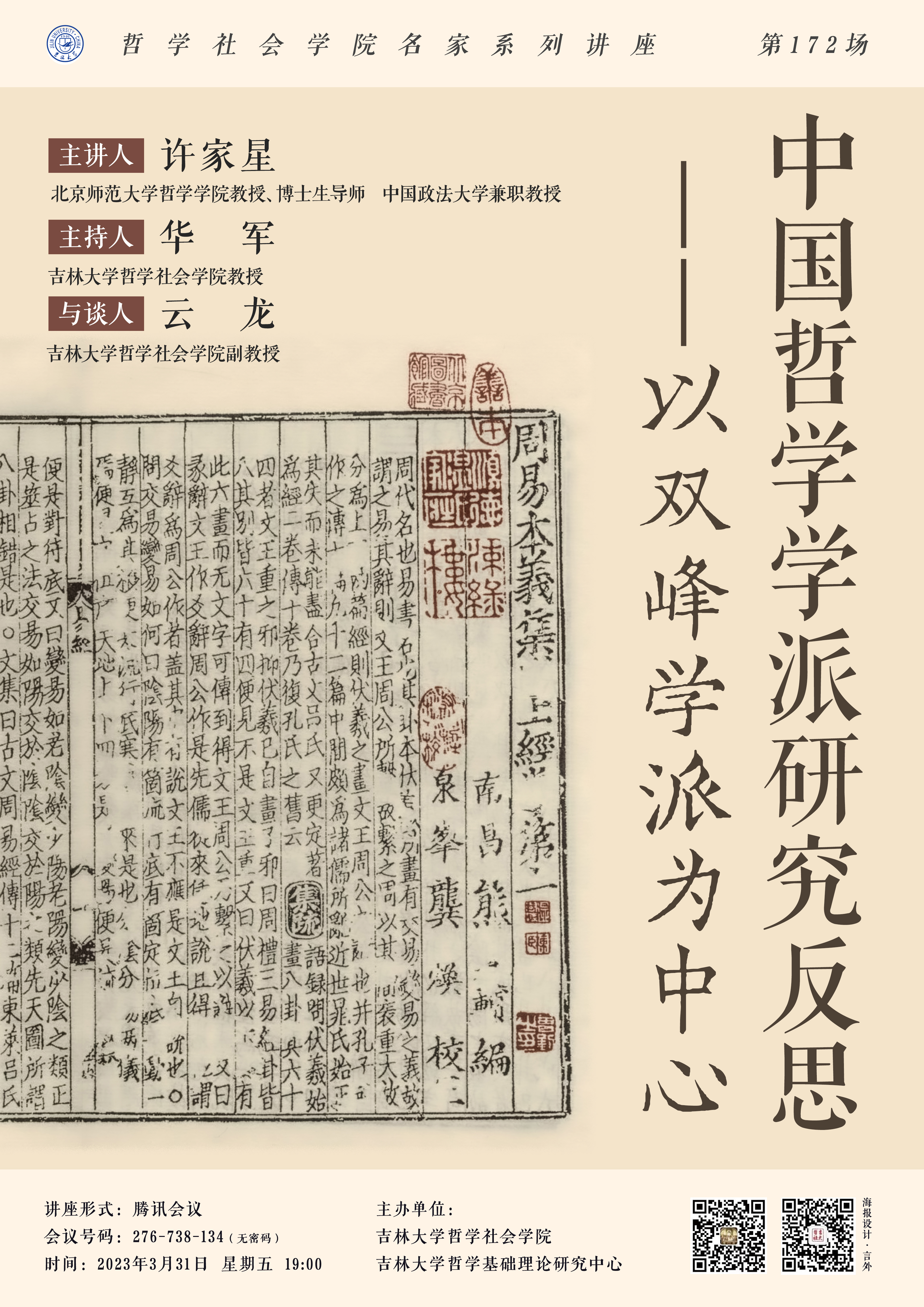 【太阳成集团tyc122cc名家系列讲座第172场】许家星:中国哲学学派研究反思——以双峰学派为中心