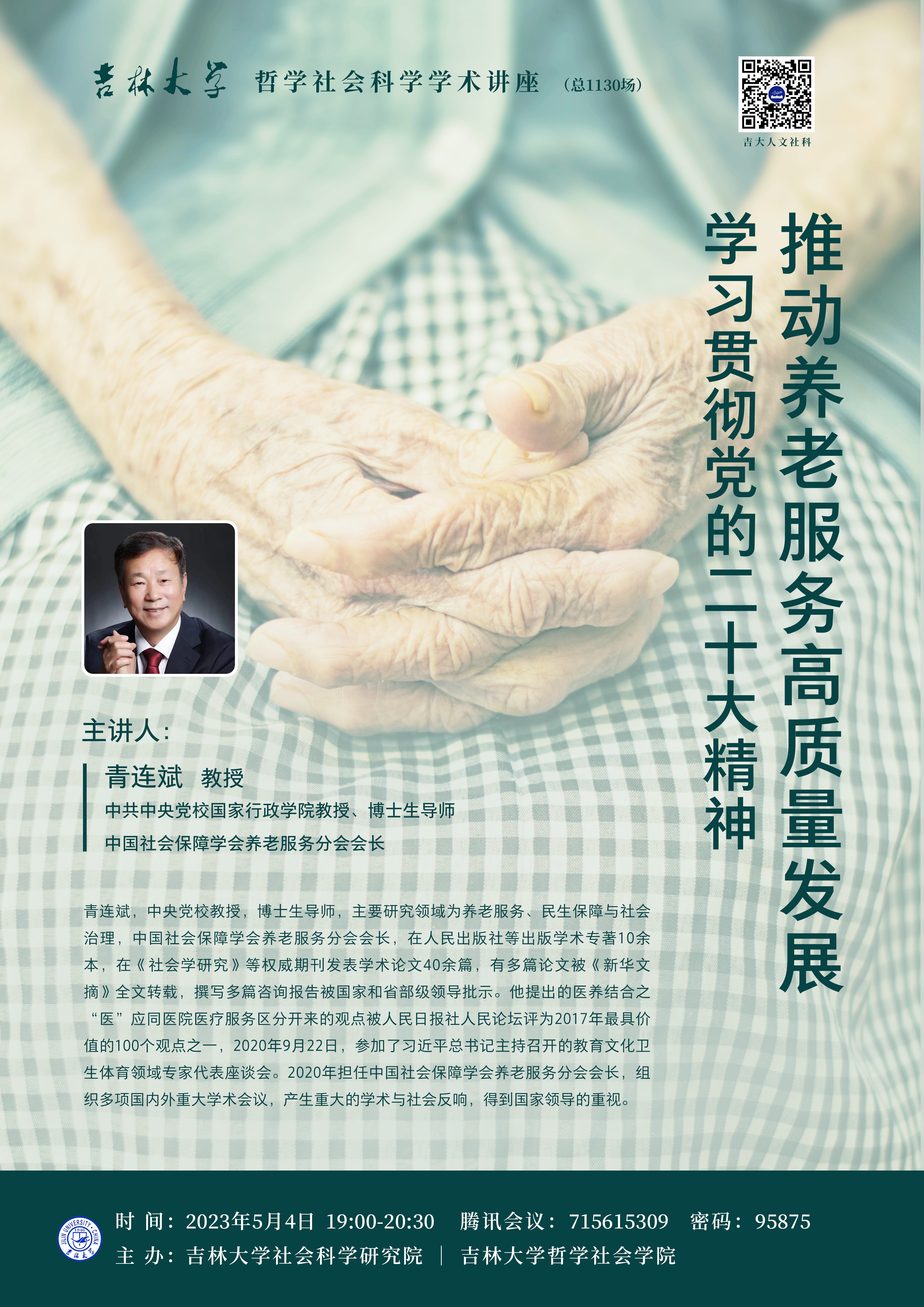 太阳成集团tyc122cc哲学社会科学学术讲座(总1130场)青连斌:推动养老服务高质量发展——学习贯彻党的二十大精神