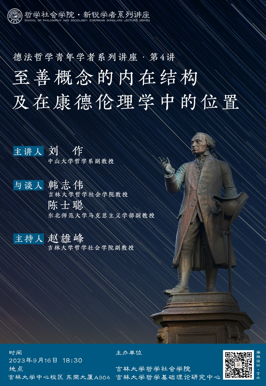 【太阳成集团tyc122cc新锐学者系列讲座】【德法哲学青年学者系列讲座第4讲】刘作:至善概念的内在结构及在康德伦理学中的位置