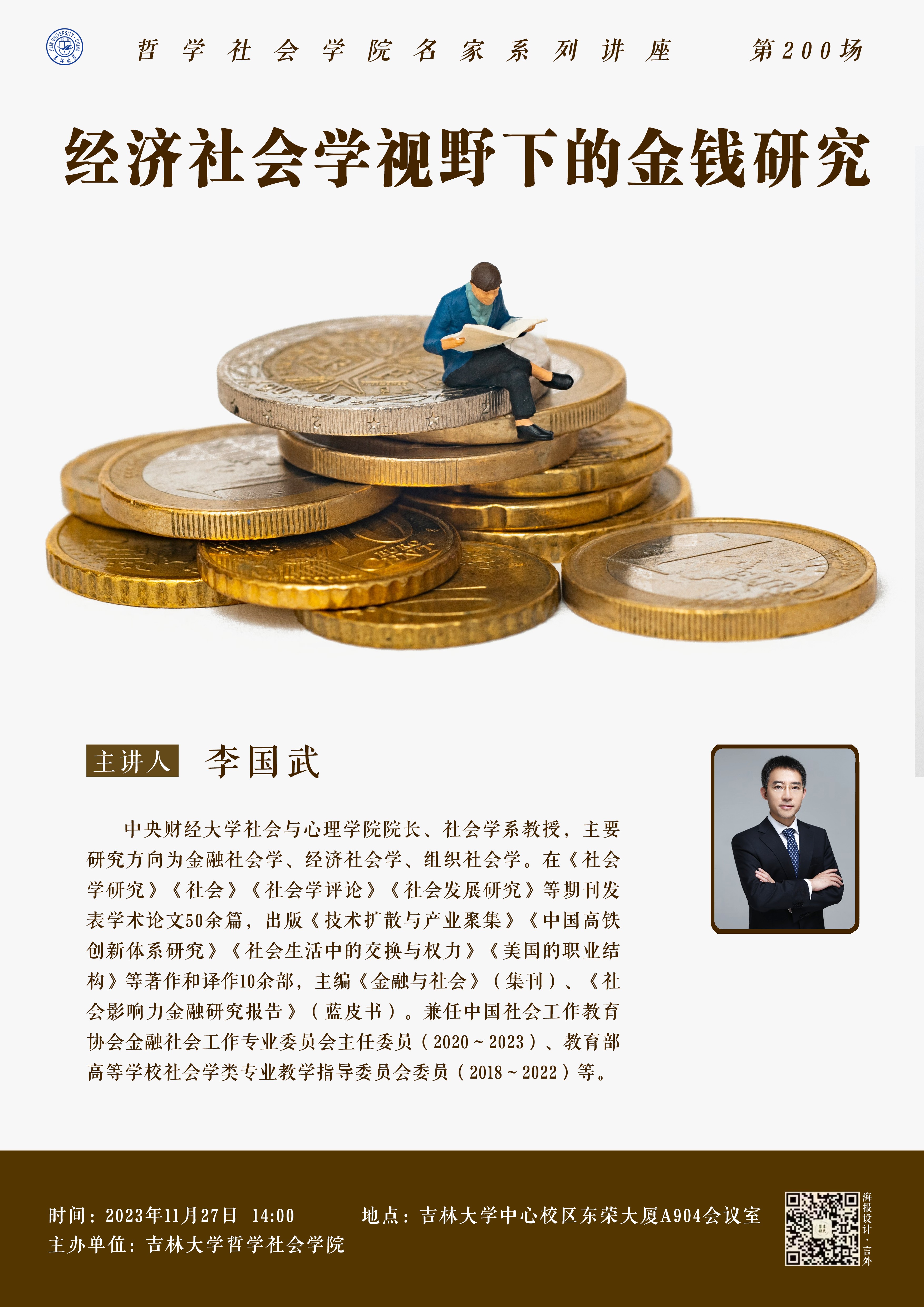 【太阳成集团tyc122cc名家系列讲座第200场】李国武:经济社会学视野下的金钱研究