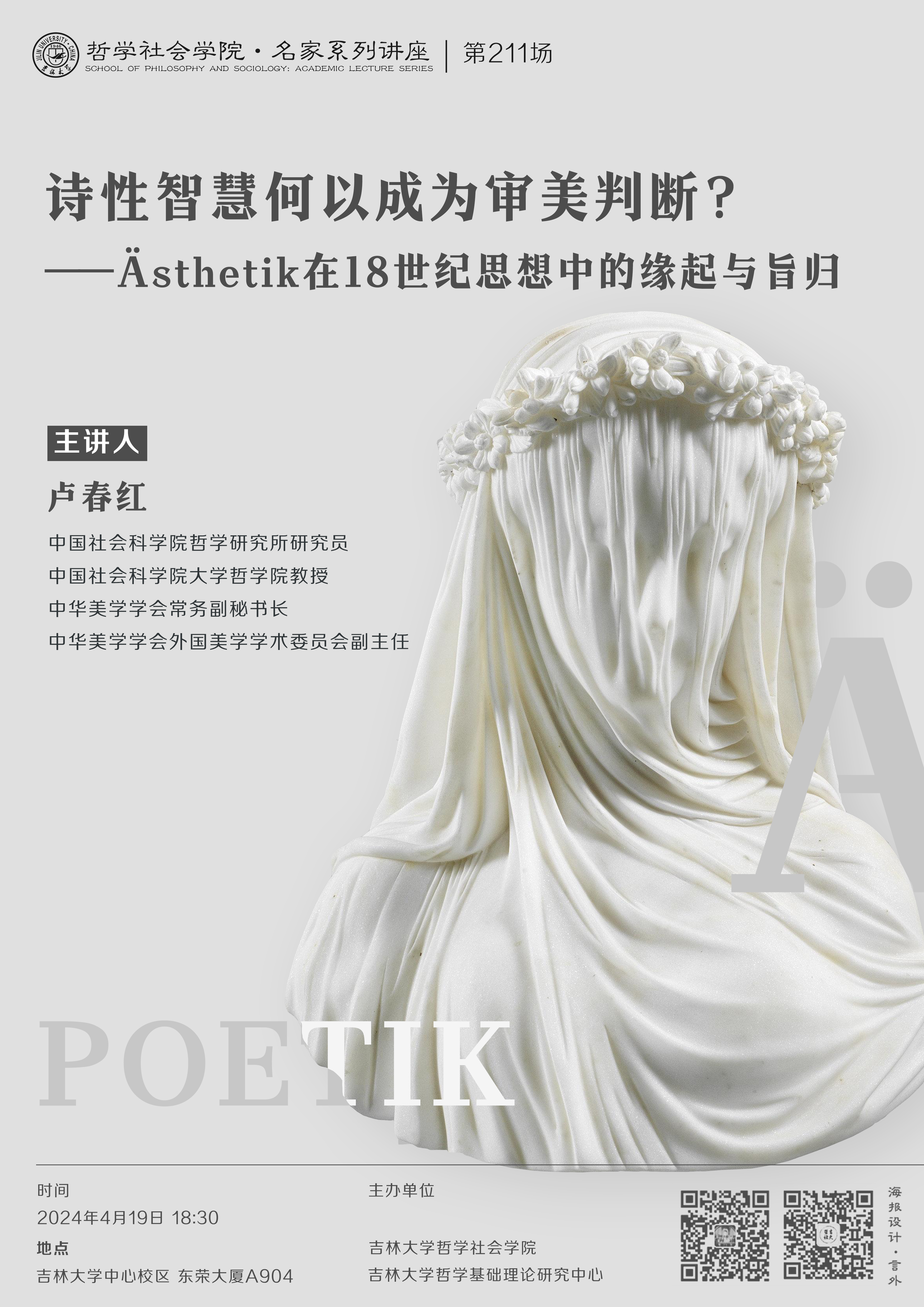 【太阳成集团tyc122cc名家系列讲座第211场】卢春红:诗性智慧何以成为审美判断?——Ästhetik在18世纪思想中的缘起与旨归
