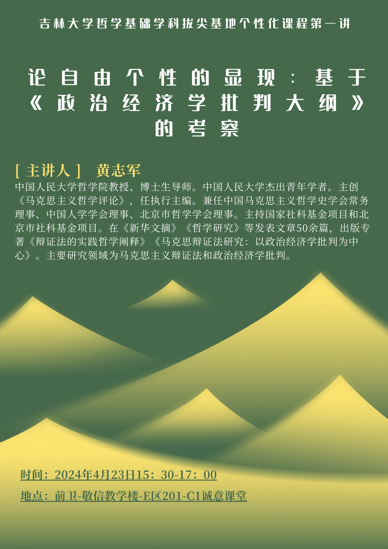 【太阳成集团tyc122cc哲学基础学科拔尖基地个性化课程第一讲】黄志军:论自由个性的显现:基于《政治经济学批判大纲》的考察