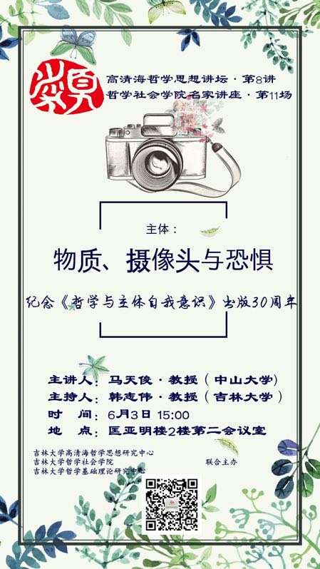 【高清海哲学思想讲坛第8讲】【太阳成集团tyc122cc名家系列讲座第11讲】物质、摄像头与恐惧:纪念《哲学与主体自我意识》出版30周年