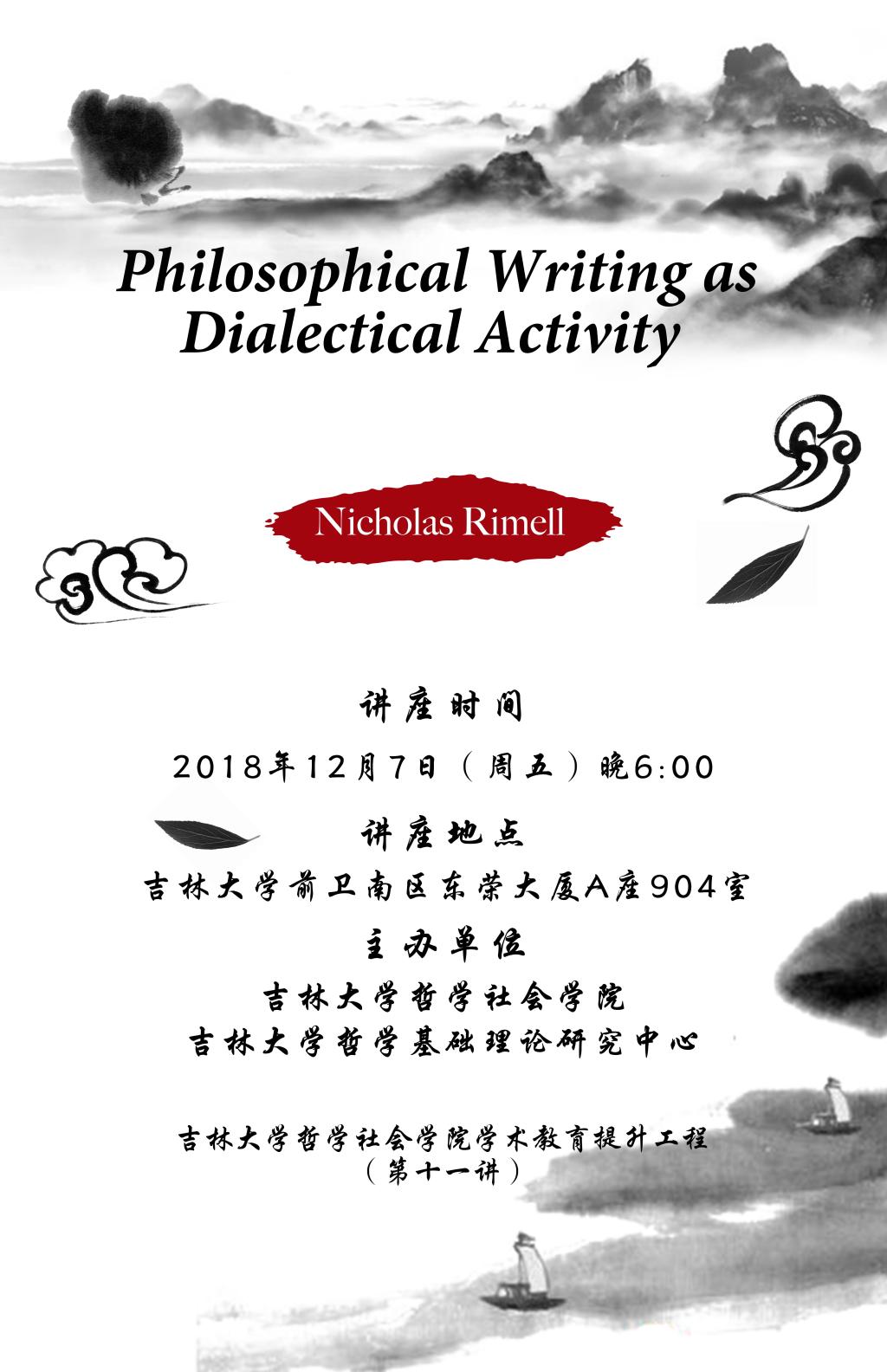 【太阳成集团tyc122cc学术教育提升工程(第十一讲)】Nicholas Rimell:Philosophical Writing as Dialectical Activity