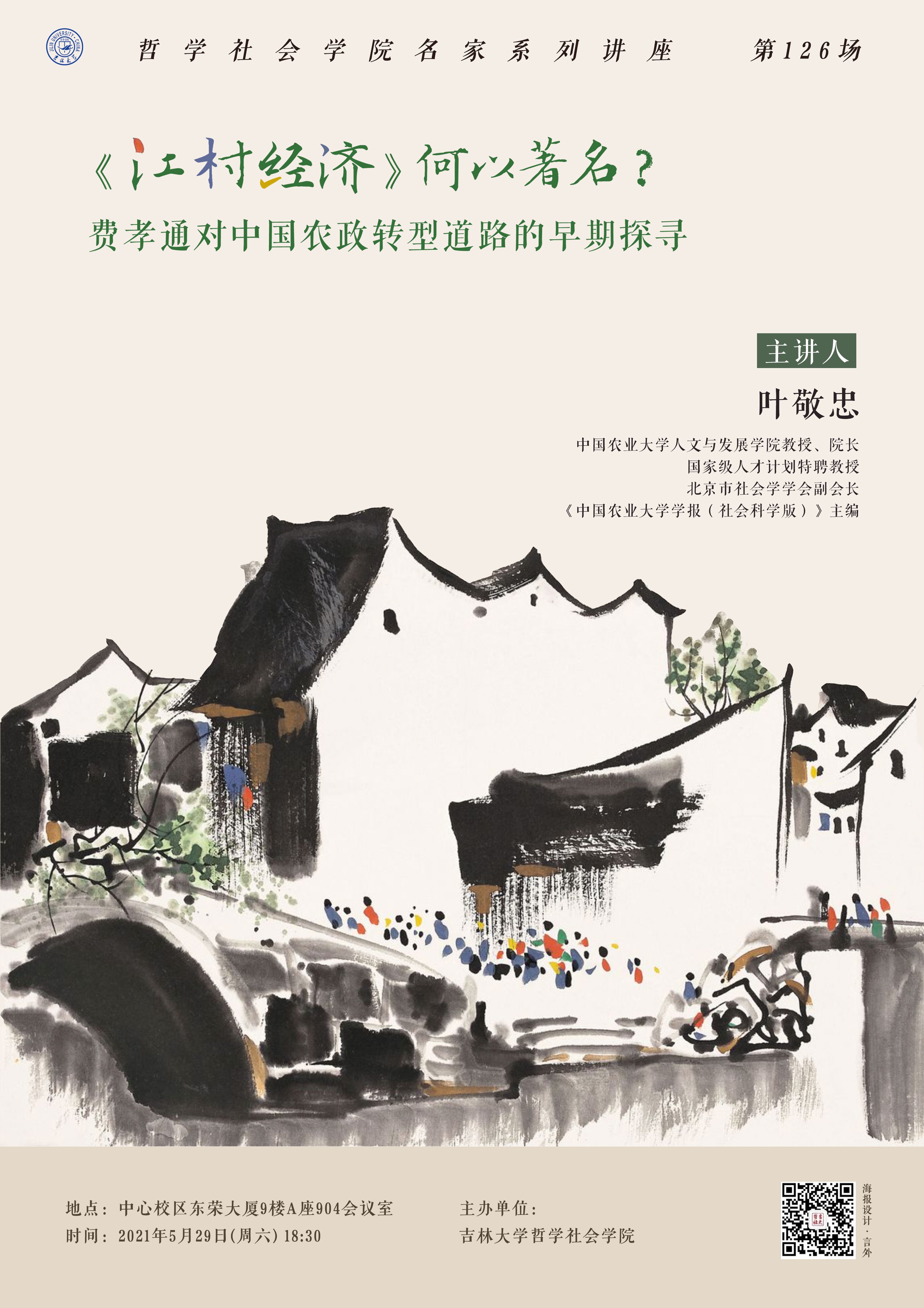 【太阳成集团tyc122cc名家系列讲座第126讲】叶敬忠:《江村经济》何以著名?——费孝通对中国农政转型道路的早期探寻