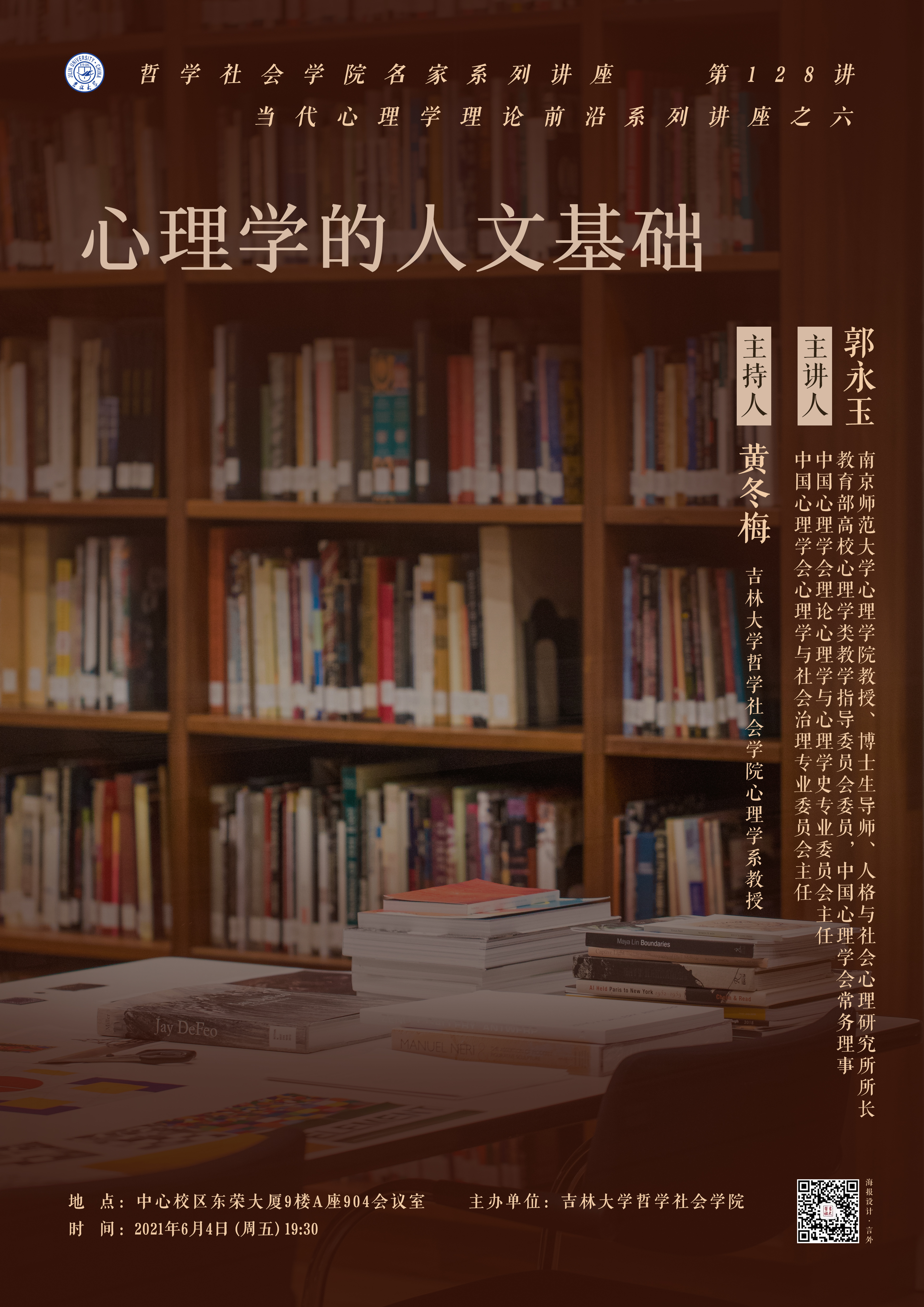 【太阳成集团tyc122cc名家系列讲座第128场】【当代心理学理论前沿系列讲座之六】 郭永玉:心理学的人文基础