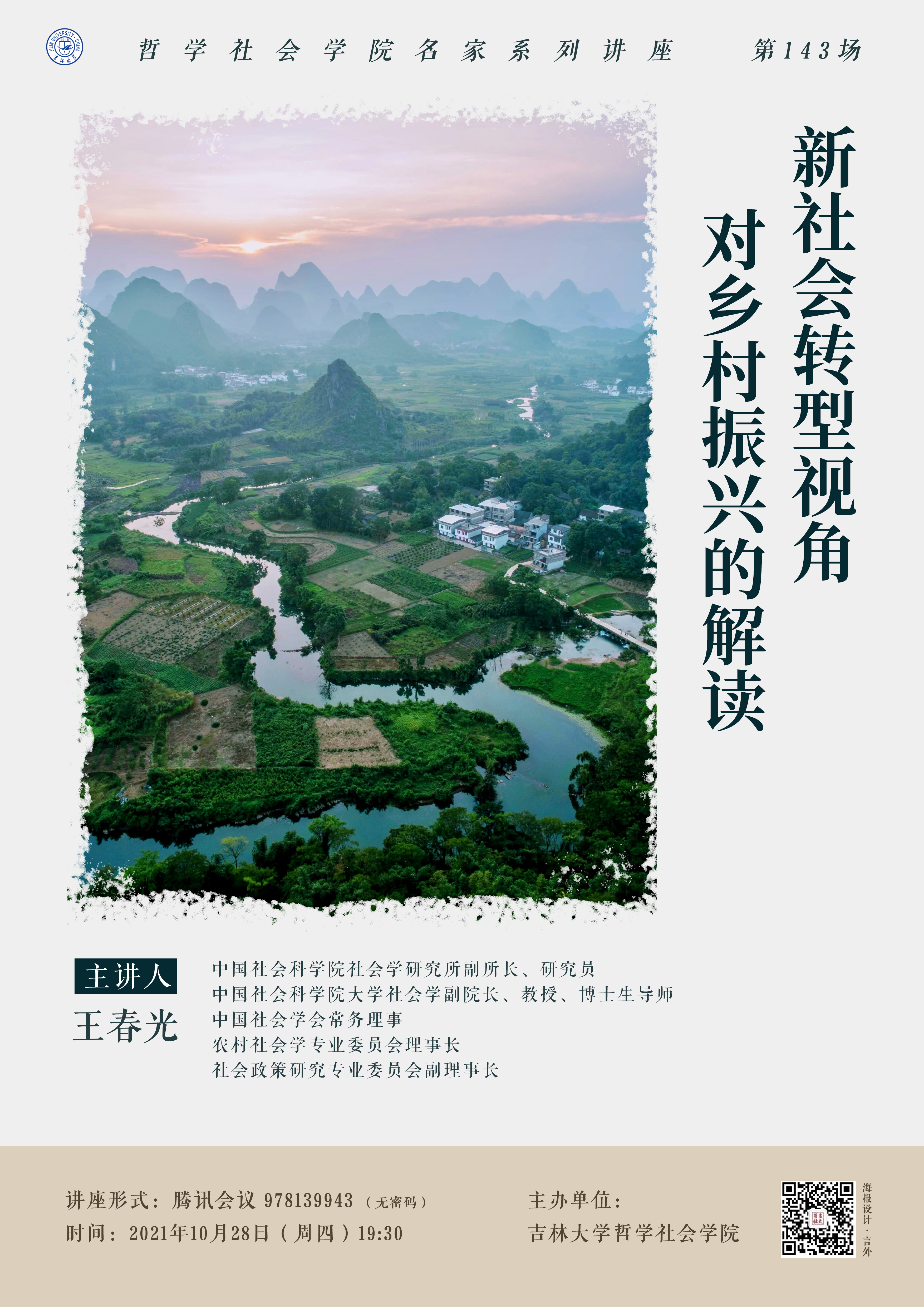 【太阳成集团tyc122cc名家系列讲座第143场】王春光:新社会转型视角对乡村振兴的解读