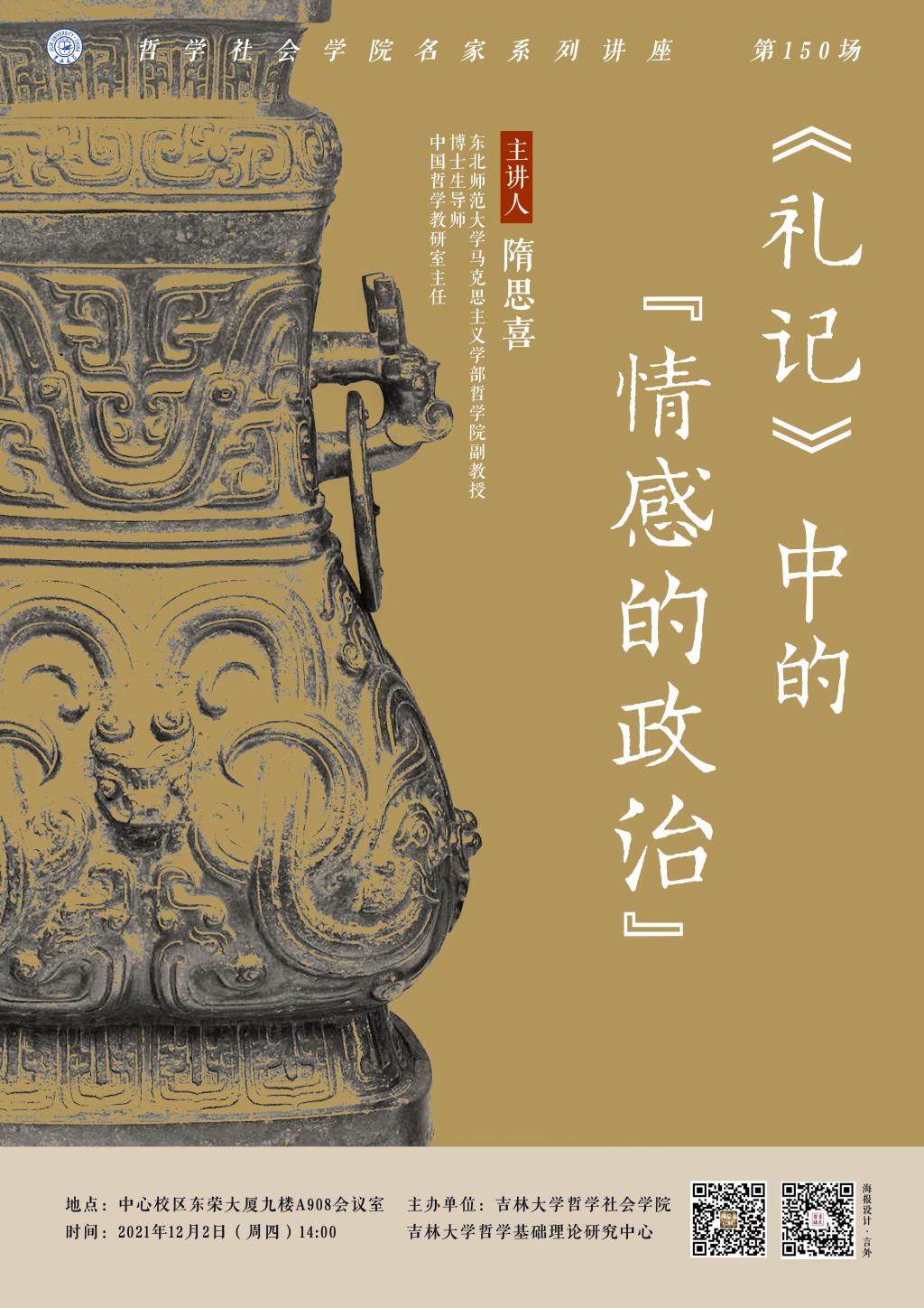 【太阳成集团tyc122cc名家系列讲座第150场】隋思喜:《礼记》中的“情感的政治”