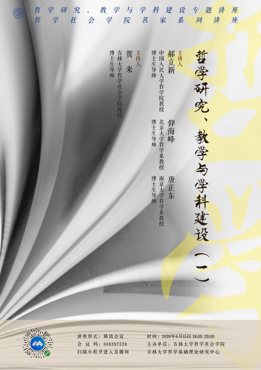 讲座题目: 哲学研究、教学与团队建设(一)
