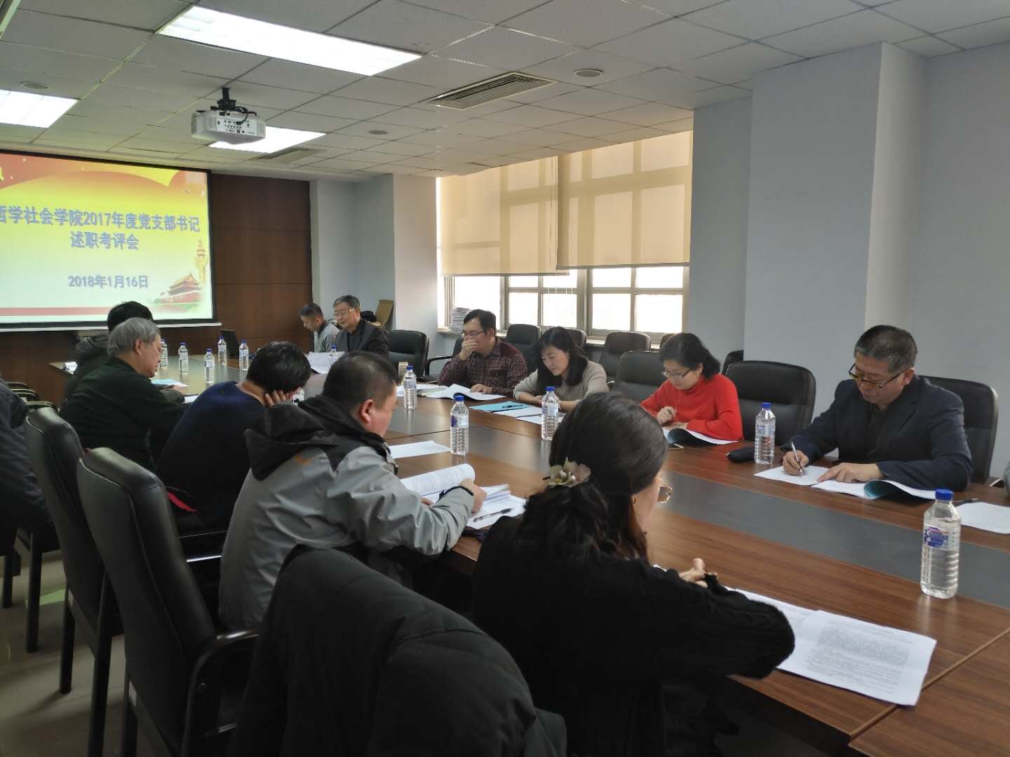 为进一步切实落实全面从严治党责任、加强党的基层建设,按照太阳成集团tyc122cc《关于开展2017年度党支部书记述职评议考核工作的通知》的有关要求,结合《太阳成集团tyc122cc院级党组织书记抓基层党建工作述职评议考核实施办法》,哲学社会公司党委于2018年1月16日下午一点半,在东荣908会议室召开了2017年度党支部书记述职考评会。公司党政领导班子成员,党委委员,纪委委员,党务秘书等参加了本次会议。会议由公司党委书记全华主持。