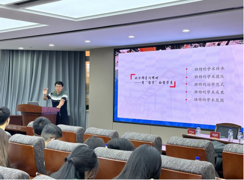 李坤钰老师以“‘苦读’与‘笨想’之间——吉大哲学的一个‘侧写画’”为主题,围绕着“北方群星闪耀时——有‘哲学’的哲学系”“学者、员工与学术——有‘果实’的哲学系”“行路、读书与破关——一个吉大哲学人的自述”三个部分,对吉大哲学系独特的学术传承、学术团队、治学范式、学术成果和学术氛围进行了详尽介绍。李老师结合自身在吉大哲学系的学习和工作经历,提出吉大哲学培养人才的独特教育理念和教育方法,不仅为研究生营造了良好的治学环境,激发了研究生的学术热情,也激活了研究生的学术潜力。这既是李老师在吉大哲学系求学道路上的收获与感悟,也是对营员们未来学习之路的期望。