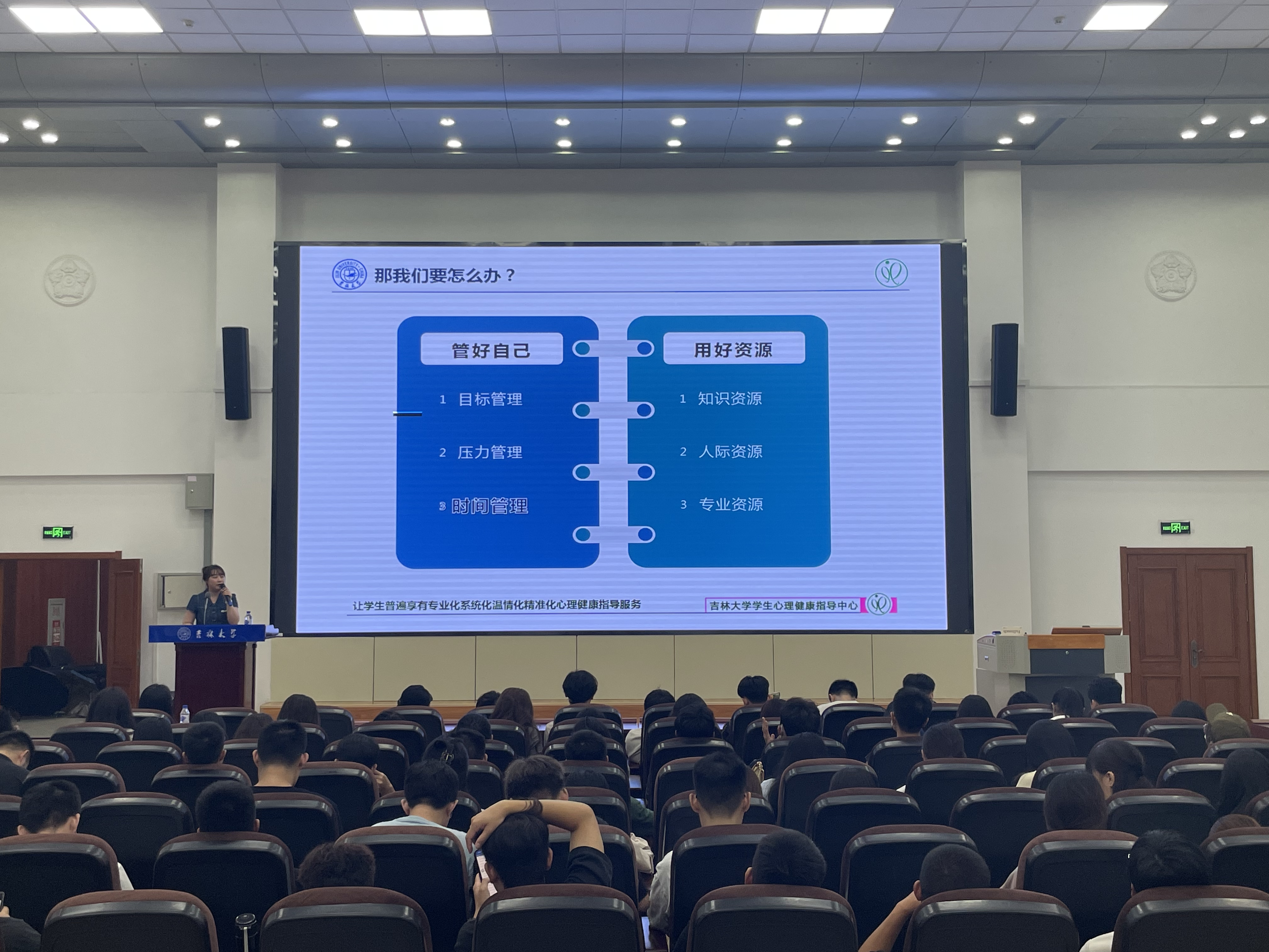 最后,王老师介绍了知识资源、人际资源、专业资源的概念定义、维护方式、寻求方法,向研究生新生讲解了如何善用身边资源实现对自身心理健康的有效维护,并介绍了公司心理咨询的预约途径。