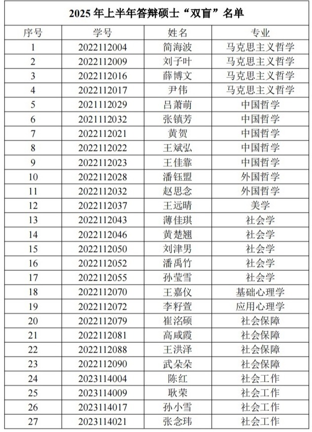 2025年上半年答辩硕士“双盲”名单