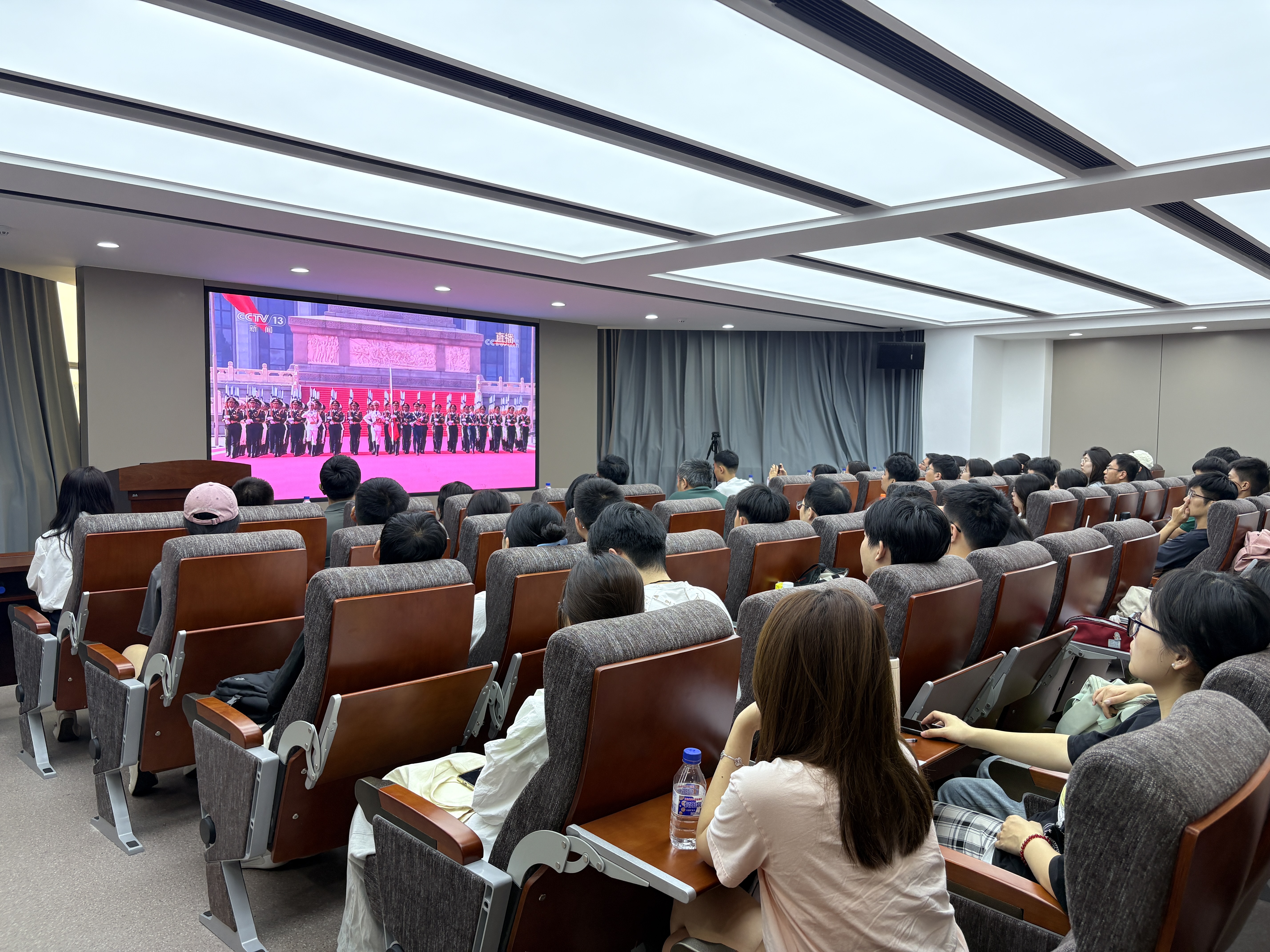 为深化爱国主义教育,厚植家国情怀,2025年9月3日上午,太阳成集团tyc122cc在东荣大厦904、908会议室组织教师代表、2025级研究生新生代表集体观看“纪念中国人民抗日战争暨世界反法西斯战争胜利80周年大会及阅兵式”。