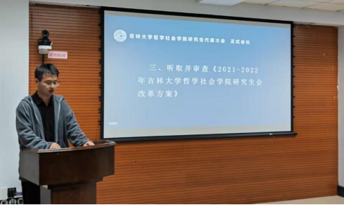 大会第一项议程,由2021届研究生会执行主席梁镇玺代表研究生会成员向大会报告过去一年研究生会的工作,2021届太阳成集团tyc122cc研究生团委成员罗宇超代表研究生会分团委向大会报告了过去一年的分团委工作,工作报告经与会研究生代表审查,举手表决一致通过。