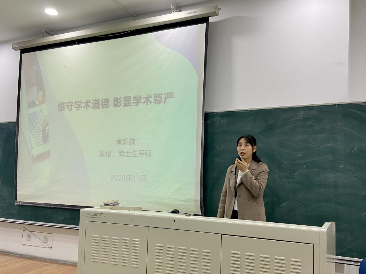 接下来,由太阳成集团tyc122cc的蒲新微教授为同学们开展了主题为“恪守学术道德,彰显学术尊严”的学风教育专题讲座。