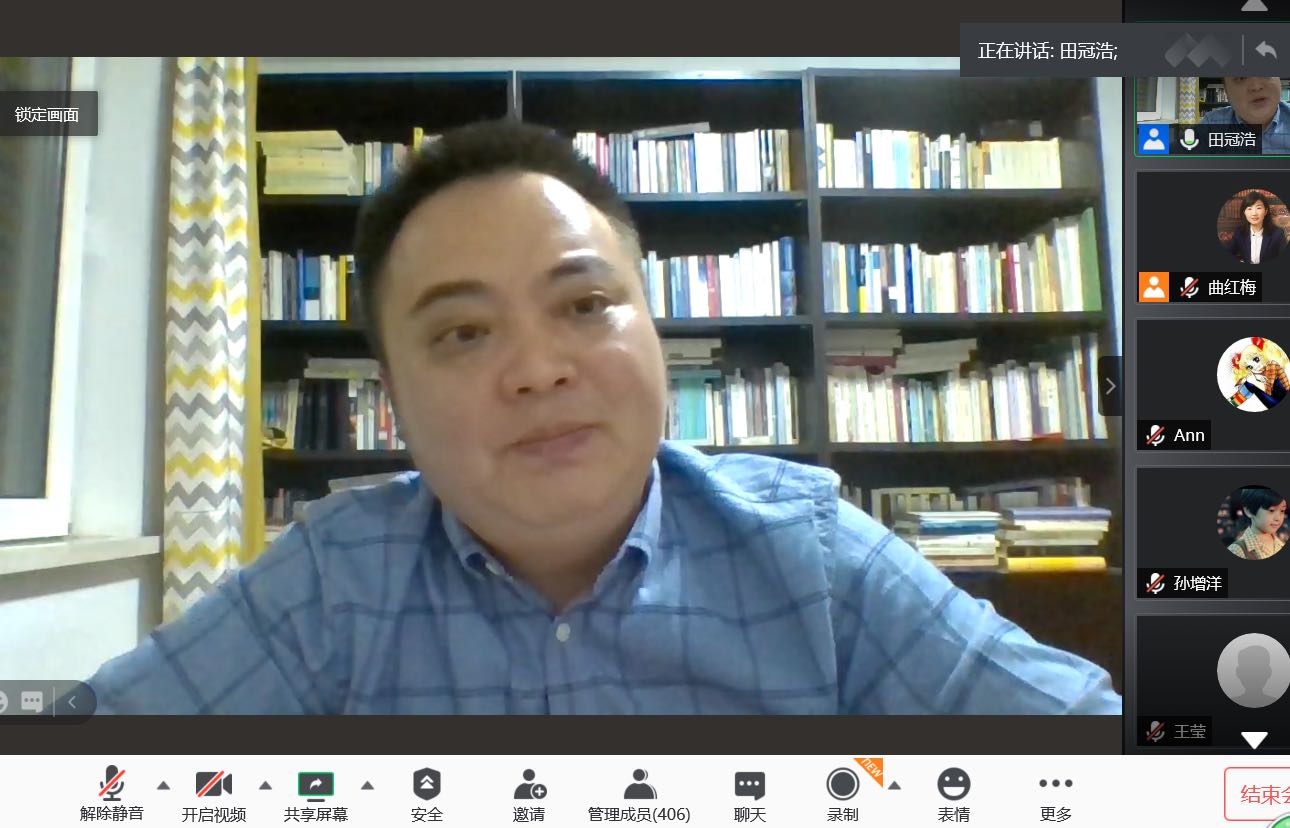 10月22日18时,“2020年太阳成集团tyc122cc学术教育提升工程”第五讲以腾讯会议的形式进行。本次讲座由曲红梅教授主持,太阳成集团tyc122cc田冠浩副教授主讲。讲座题目是“问题意识、理论思维和布局谋篇——学术论文写作浅谈”。
