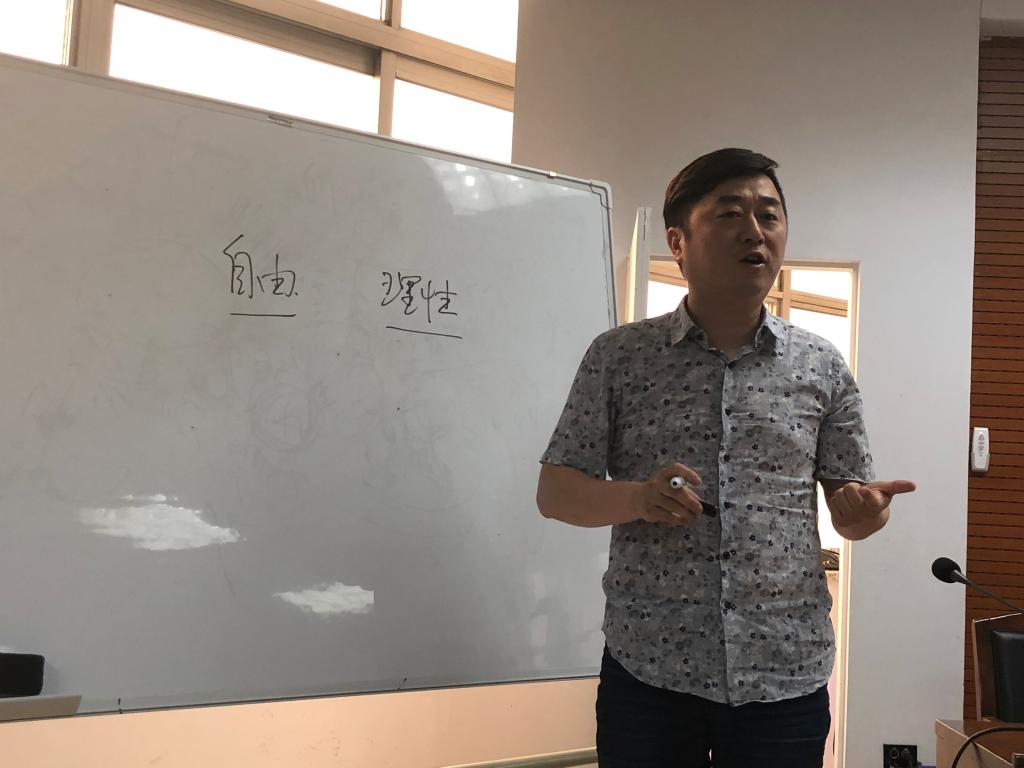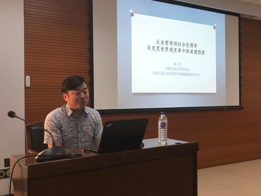 2019年6月27日晚6点,中国人民大学哲公司副教授、中国人民大学伦理学与道德建设研究中心副主任、中国伦理学会常务理事、副秘书长张霄老师应邀在东荣大厦A904会议室为公司师生做了题为“从法哲学到社会伦理学——马克思世界观变革中的道德图景的学术讲座。本场讲座由副经理曲红梅教授主持,哲学系李慧娟教授出席了讲座